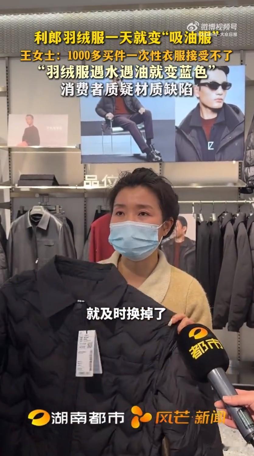 湖南长沙的王女士最近遇到了一件挺闹心的事儿,她在利郎品牌专柜花一千多块钱买了件羽