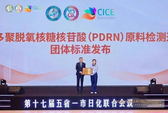 佰鸿华湙集团董事长史雯亮出席会议,携全生态PDRN技术成果与行业标准建设硕果亮相,并在核心展区打造全生态PDRN创新成果展示平台,集中呈现系列创新原料、定制化解决方案及代表性合作案例。会上,由佰鸿华湙牵头、上海日用化学品行业协会组织制定的《化妆品用多聚脱氧核糖核苷酸(PDRN)原料检测通用要求》团体标准正式发布,相关参标单位获统一授牌。该标准系统规范了PDRN原料的范围、术语和定义、基本信息、检测通用要求及方法、试验要求,为行业发展提供了重要依据。