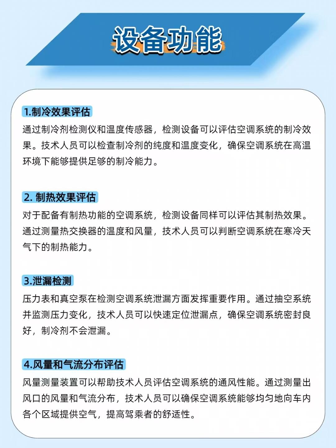 【夏天空调吹热风?别瞎加冷媒!这台 “照妖镜” 才是故障克星】 一到夏天就喊 “空调不冷”,盲目加冷媒白花冤枉钱?汽车里的空调好坏,全靠空调系统检测设备“把脉”—— 它是空调故障的 “照妖镜”,制冷差、漏冷媒、风量小都能精准揪出! ————————————————————————————————— ✅ 这设备靠 4 件 “神器” 干活: 制冷剂检测仪:查冷媒是不是加错了、纯不纯(加了劣质冷媒,空调直接 “罢工”); 压力表 + 真空泵:测管路压力,一眼揪出冷媒漏点(不用拆车瞎找); 温度传感器:测蒸发器 / 冷凝器温度,看制冷 / 制热够不够劲; 风量装置:查出风口风够不够大、吹得匀不匀(避免副驾冻成狗,主驾热出汗)。 ————————————————————————————————— 📌 它能解决你最烦的空调问题: 制冷慢?测冷媒纯度 + 温度,不用瞎换压缩机; 冬天不热?查热交换器温度,精准定位加热故障; 空调越用越弱?测管路压力,快速找漏点补冷媒。 这设备不光维修店用,车企出厂前会拿它测每台车的空调 —— 所以修车时看到师傅用这些工具,才是真 “对症下药”,不是乱换件! 你家车空调遇过啥糟心事?评论区说说~