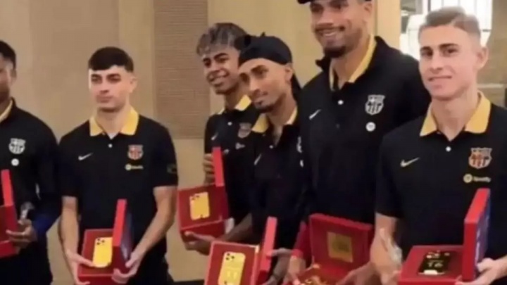 消息称,尽管巴萨今天没训练,但不少球员来到体育城进行恢复。消息人士获悉,在开始健身房训练之前,一小群与俱乐部相关的宾客惊喜地送给了球员一台金色iPhone17ProMax,这让大家感到惊喜。