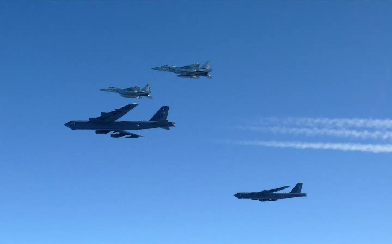 日方11日宣布,日本航空自卫队与美军于10日在日本海上空举行联合演习。 美军出动两架B-52轰炸机。日本航空自卫队出动了3架F-35和3架F-15战斗机参加演习。 日本联合参谋本部表示:“我们确认了日本自卫队和美军的战备状态,进一步加强了日美同盟的威慑和应对能力。”