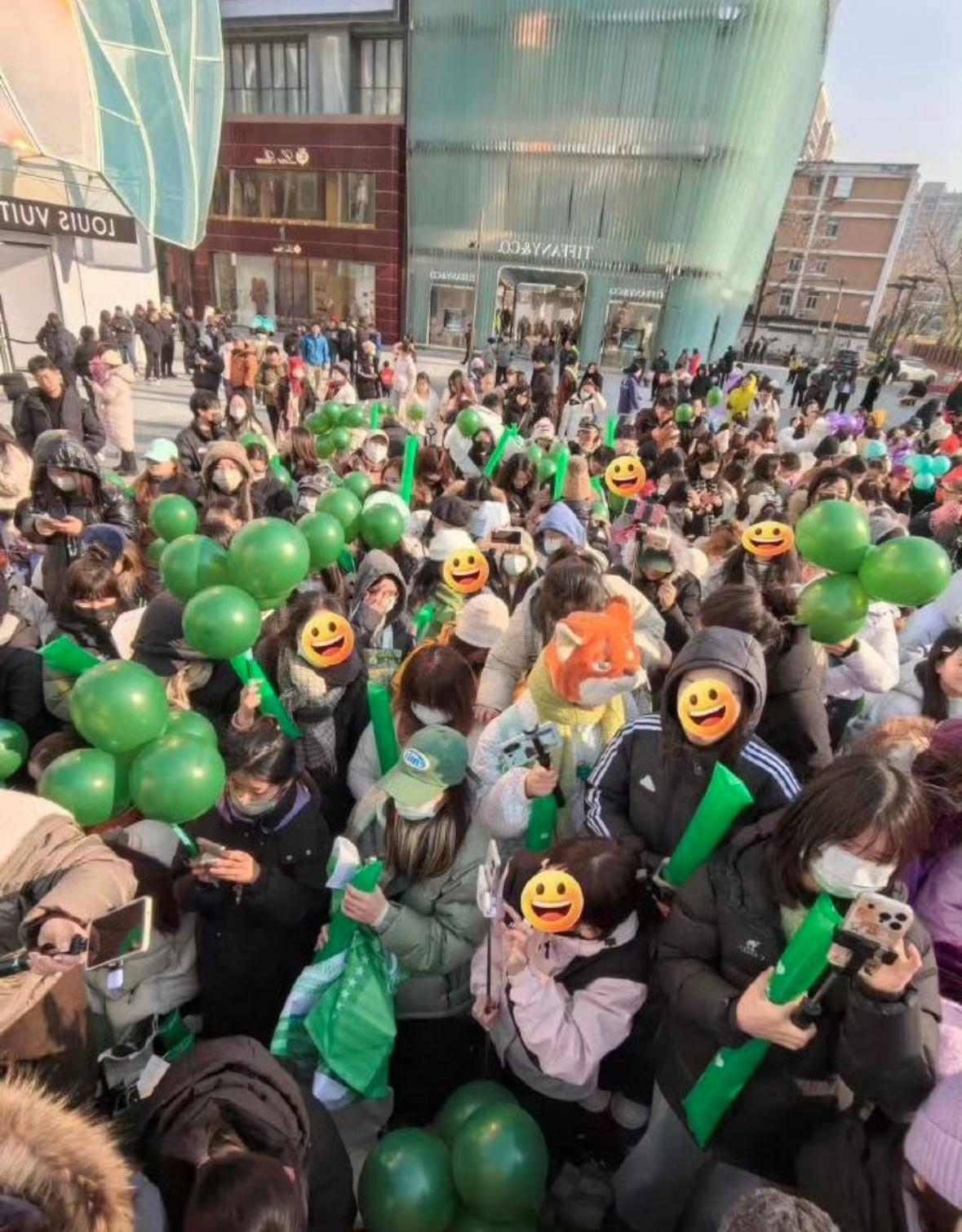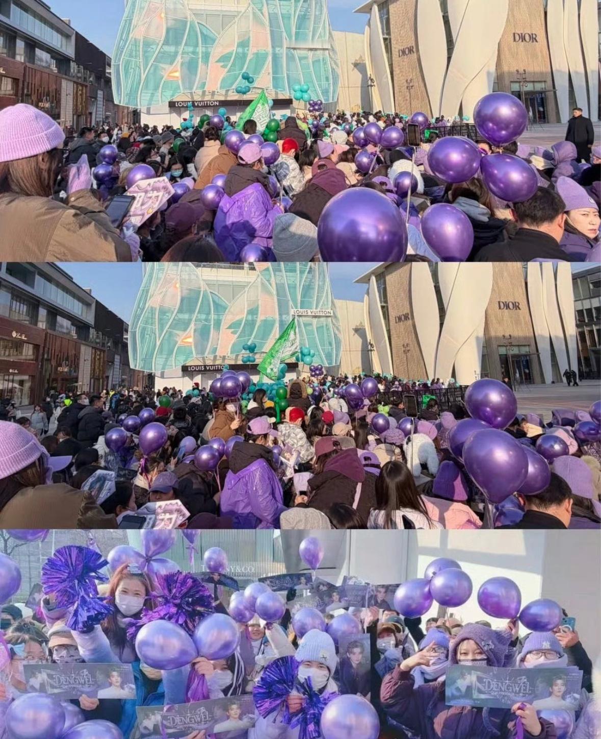 刘雨昕、邓为、李昀锐今天Dior活动线下粉丝应援对比