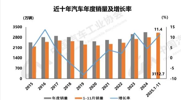 中汽协有关负责人表示,11月,中国汽车产销延续良好表现。企业抢抓政策窗口期,生产供给依然保持较快节奏,在高基数基础上,产销环比、同比均实现增长,新能源汽车表现强劲,汽车出口较快增长。展望2025年全年,汽车内需市场在政策组合效应推动下有效改善,新动能加快释放,对外贸易呈现出较好韧性,汽车产销量全年有望再创历史新高。