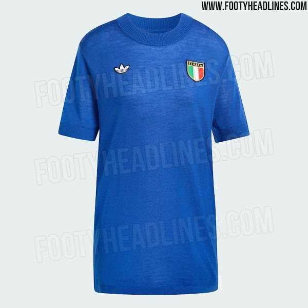 而在这个系列中出现了一个意外的项目:来自1970年代的意大利主场复刻球衣。在那个时期,阿迪达斯并不是意大利国家队的官方装备供应商。因此这并不是一个直接的复刻,而更像是一个被“改变过的历史”。
