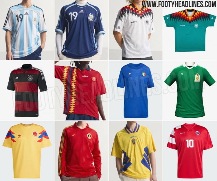 报道中表示,阿迪达斯2026年国家队复刻球衣都是各国过去时代的标志性球衣,该款复刻系列包括:阿根廷2006年主场与客场球衣、德国1994年主场与客场球衣、德国2014年客场球衣、比利时1986年主场球衣、墨西哥1986年主场球衣、西班牙1994年主场球衣、哥伦比亚1990年客场球衣、智利1994年主场球衣、意大利1970年代主场球衣。