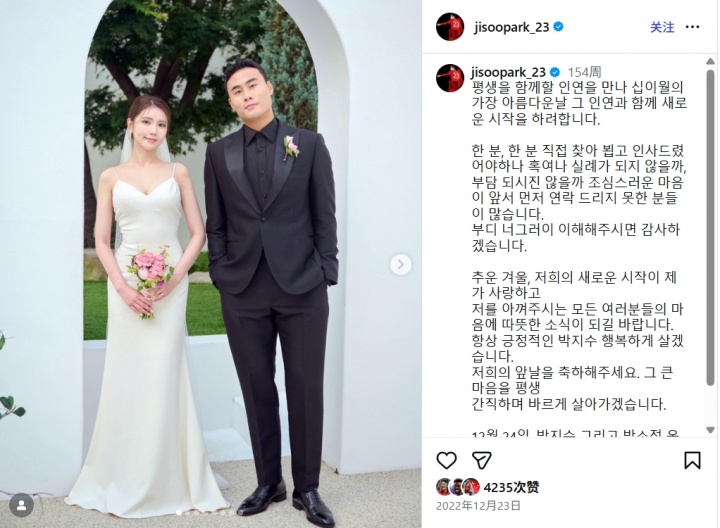 朴志洙2023年夏加盟武汉三镇,本赛季为三镇出场26次,打进1球,他的合同将在12月31日到期。他与其妻子于2022年12月完婚。