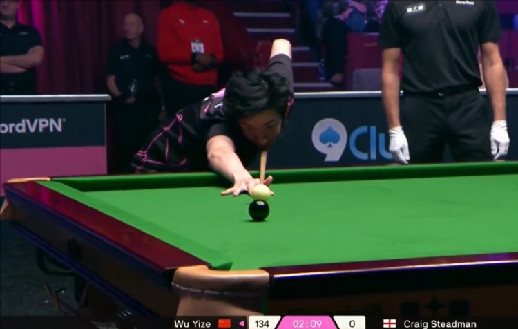 吴宜泽在开局上手后,用7分钟完成清台,打出单杆141分,创造开赛为止单杆最高分。