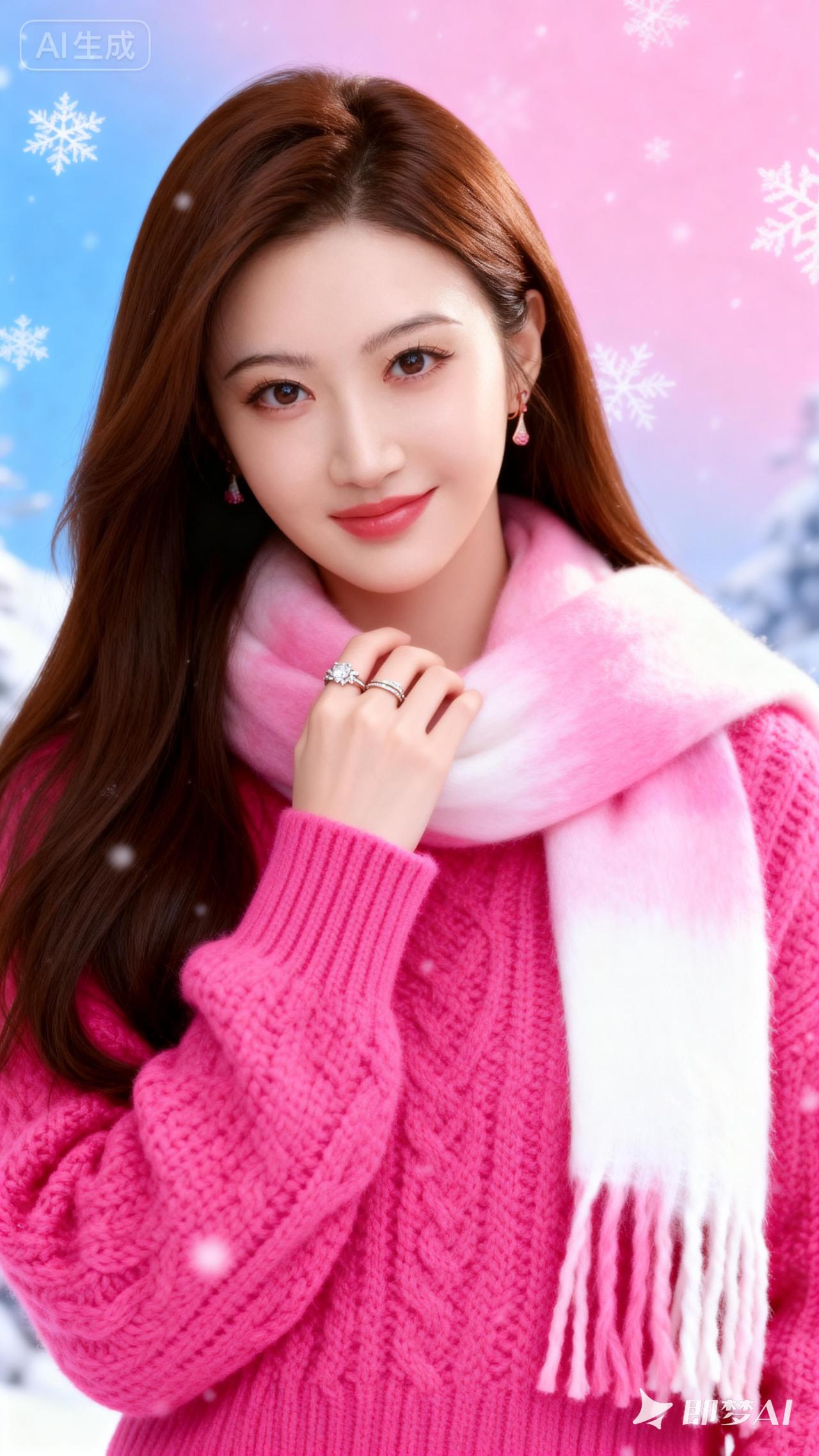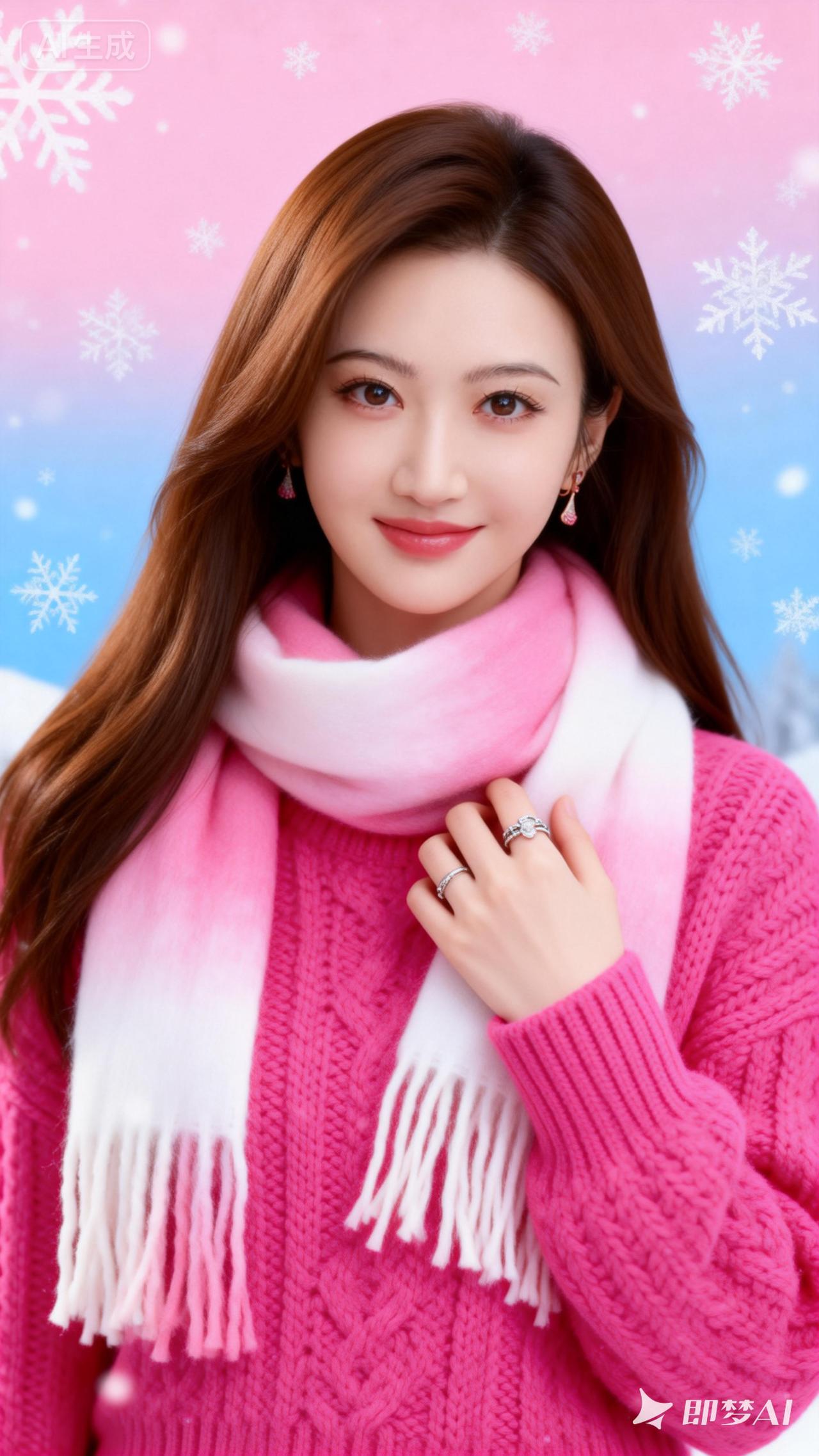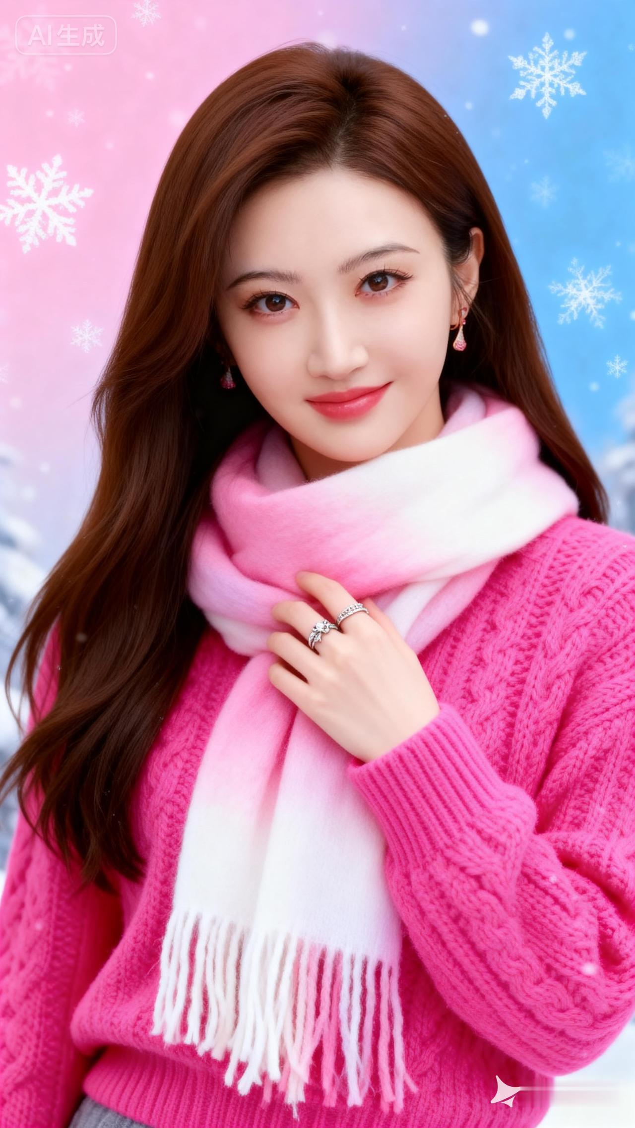 冬日暖阳下的甜美少女,粉色毛衣与围巾的完美搭配,温暖又可爱!🌞💕