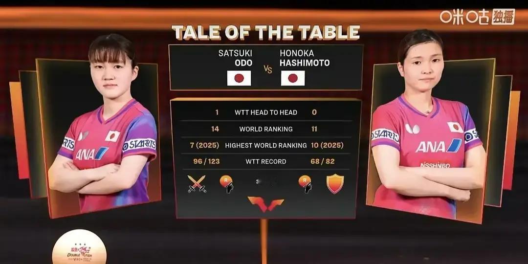 今天WTT香港总决赛女单1/8,有场日本德比。 大藤沙月对上桥本帆乃香,4-0轻松进8强。 桥本世界排名11,比大藤的14还高三位,结果被零封。 每局比分都压着打,11-8、11-7、11-6,最后一局12-10也没让桥本翻盘。 之前俩人交手大藤就赢过,这次还是稳得很。 桥本倒好,直接一轮游,这趟香港怕是白跑了一半。 大藤打削球确实有一套,桥本的削球没给她造成啥麻烦。 晋级8强的大藤,接下来估计状态会更顺。