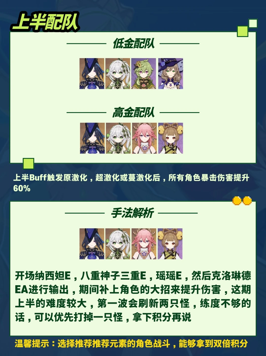 5.6限时活动「机谋变策战记」day5活动攻略! ✨选择推荐推荐元素的角色战斗,能够拿到双倍积分