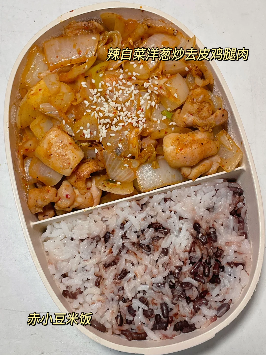📍米饭+辣白菜洋葱炒去皮鸡腿肉