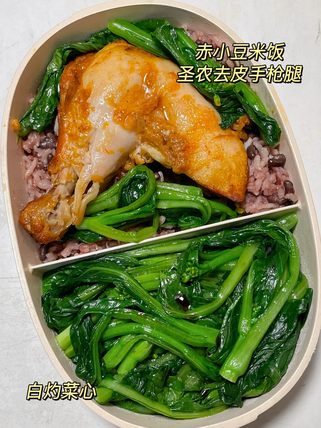 📍米饭+去皮手枪腿+白灼菜心