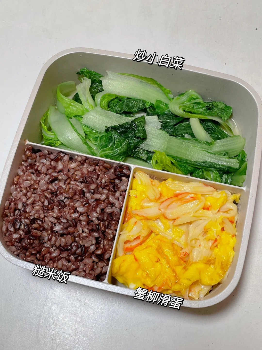📍糙米饭+蟹柳滑蛋+炒小白菜