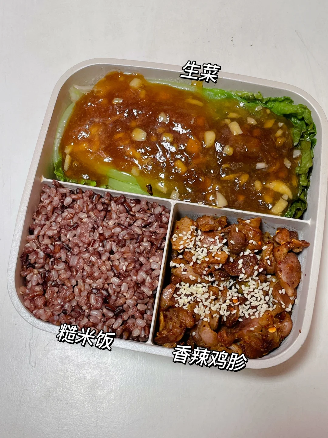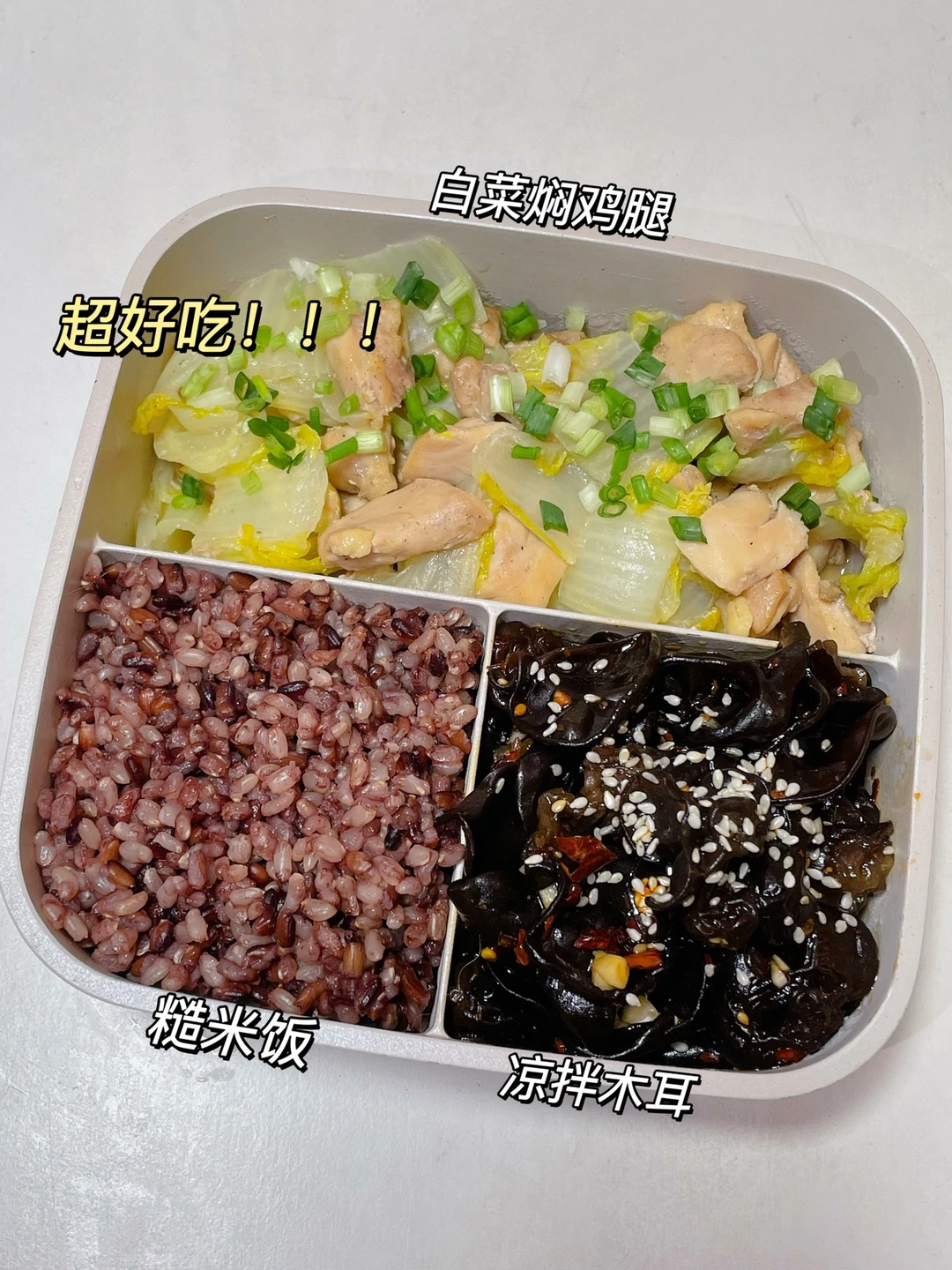 📍糙米饭+娃娃菜鸡腿丁+凉拌木耳