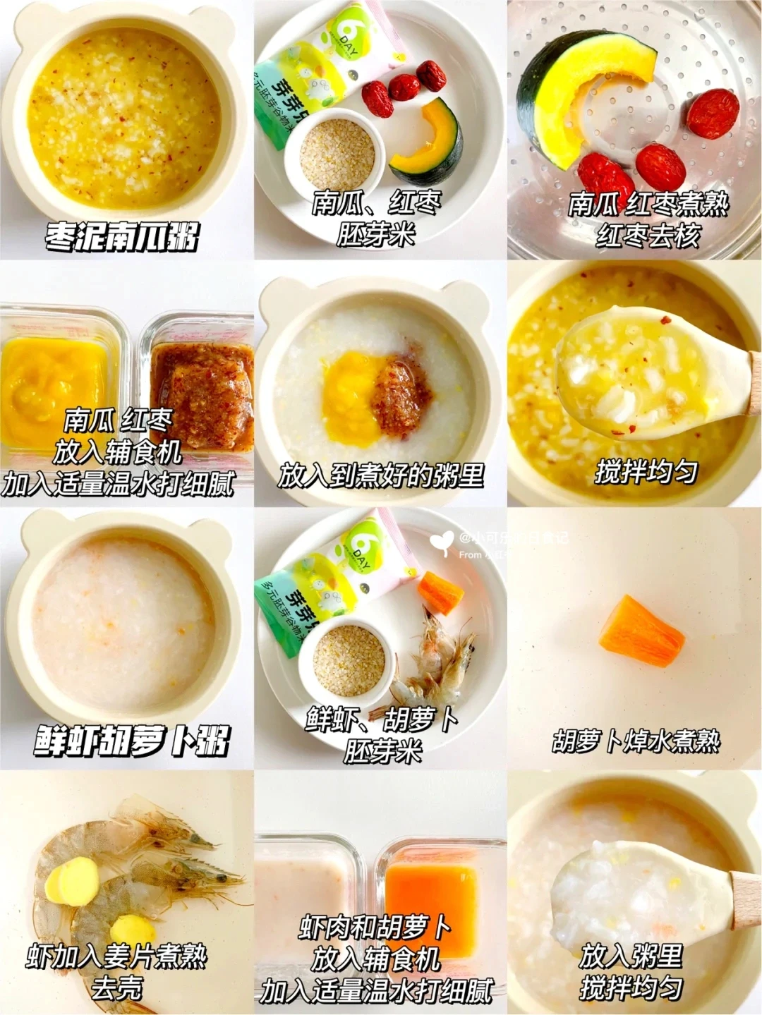 食材可以继续打泥,在宝宝适应喝粥后可以加点颗粒干感哦