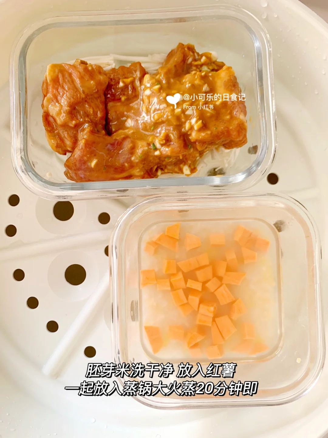 🌈排骨和胚芽米饭一起上锅大火蒸20分钟