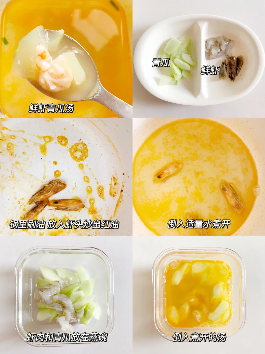 ③青瓜和虾肉放在蒸碗里,倒入煮开的汤,放入蒸锅蒸15分钟