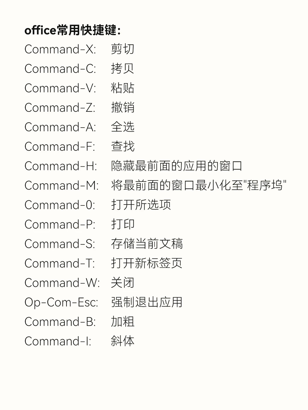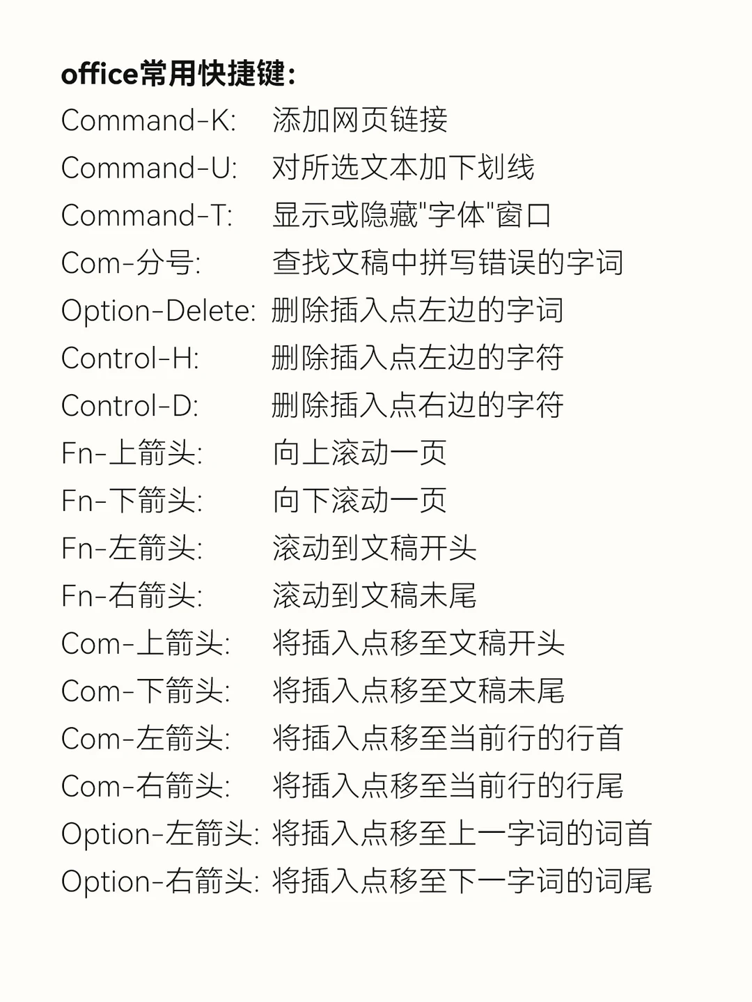 最后奉上office常用快捷键