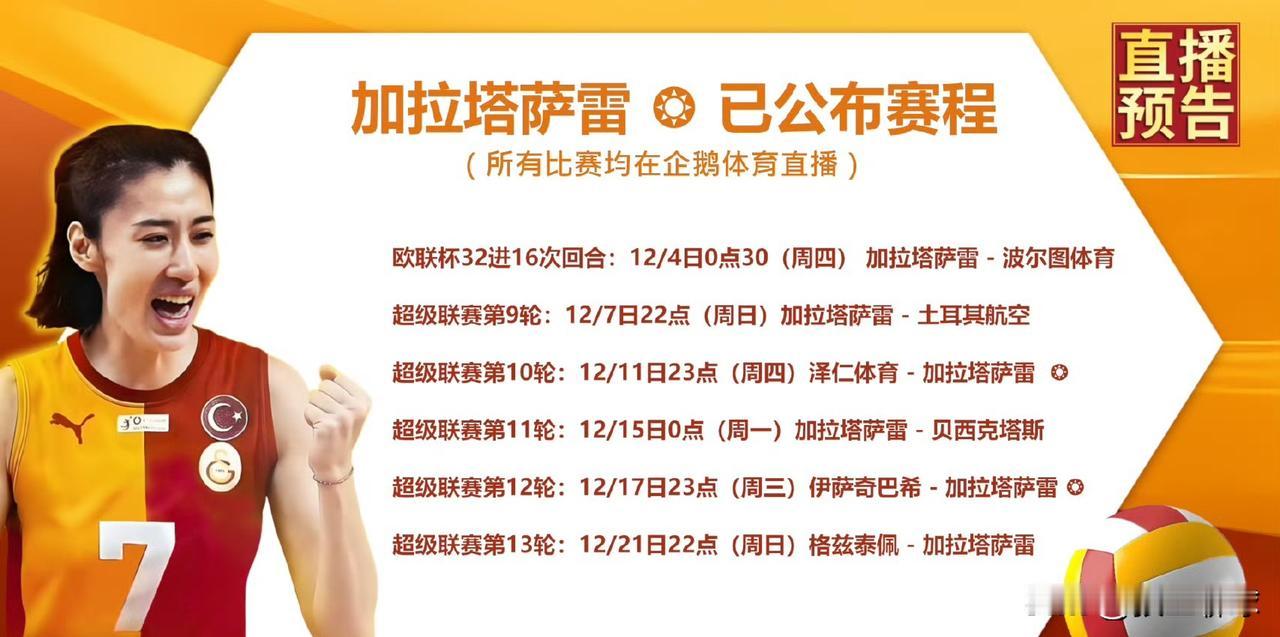 土超女排联赛第10轮焦点战——23点 泽仁体育vs加拉塔萨雷,关注国手王媛媛的海外征战。 土耳其🇹🇷女排联赛常规赛第九轮结束,加拉塔萨雷7胜2负积22分排名第3,泽仁体育6胜3负积18分排名第5,两队实力比较接近,这应该是一场火星撞地球的激烈比赛,王媛媛会首发出战吗?如果出战能打出怎样的表现?