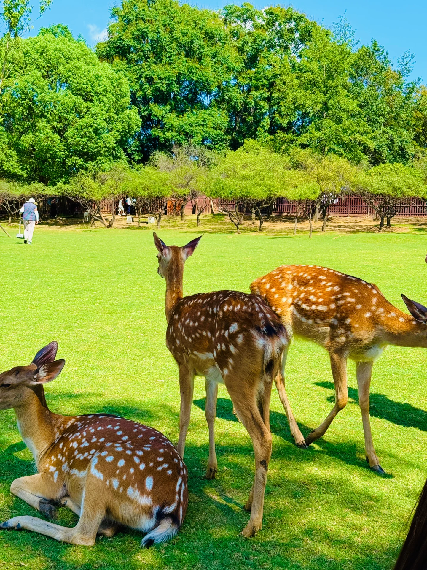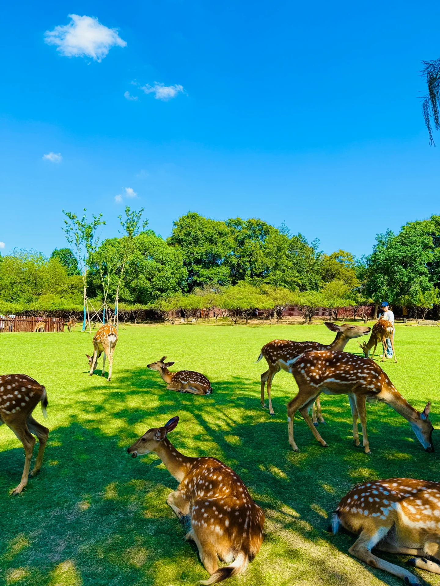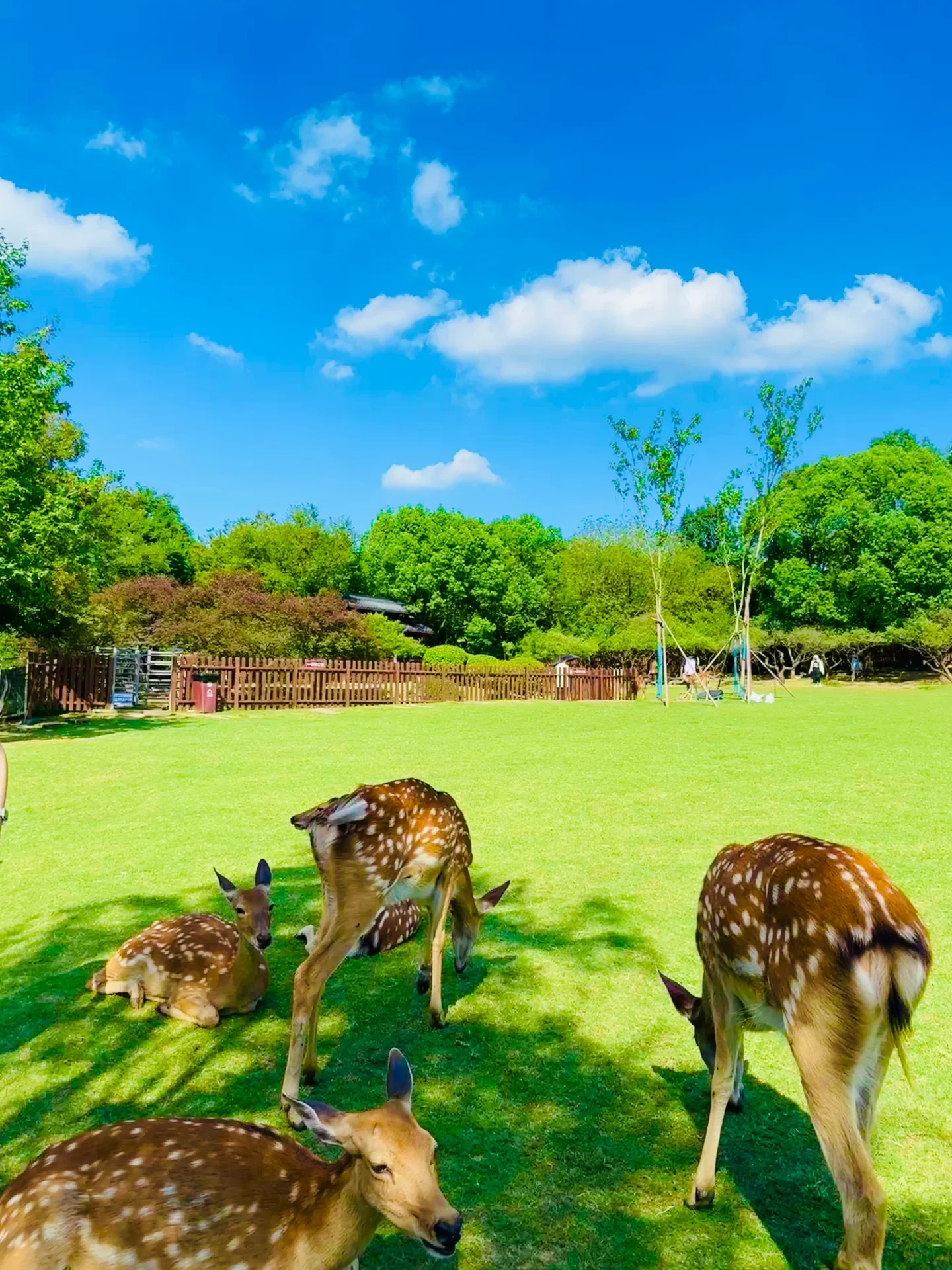 里面有大片的绿草坪 好多的小鹿🦌🦌🦌