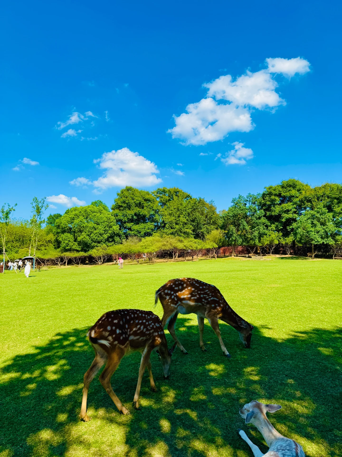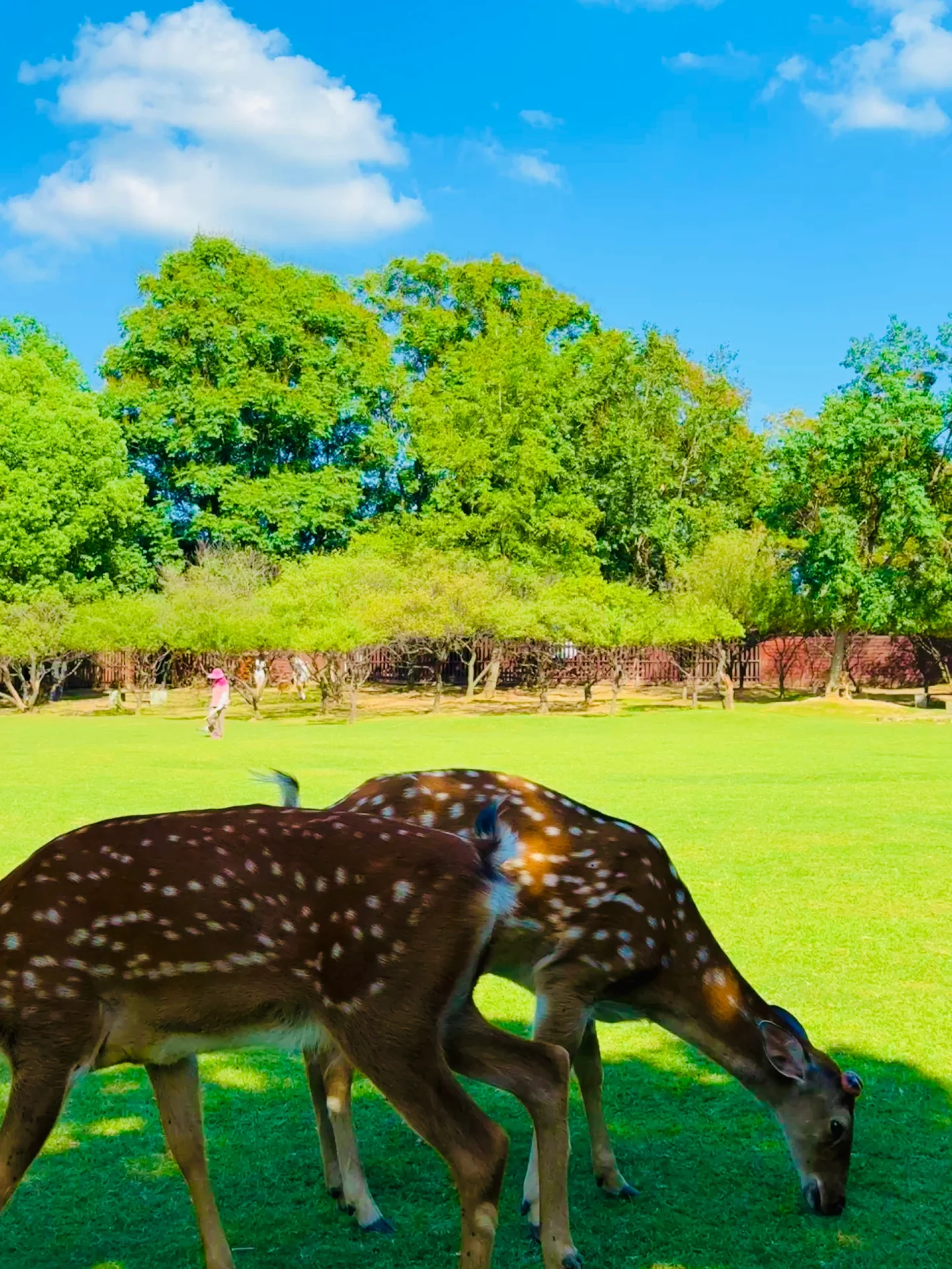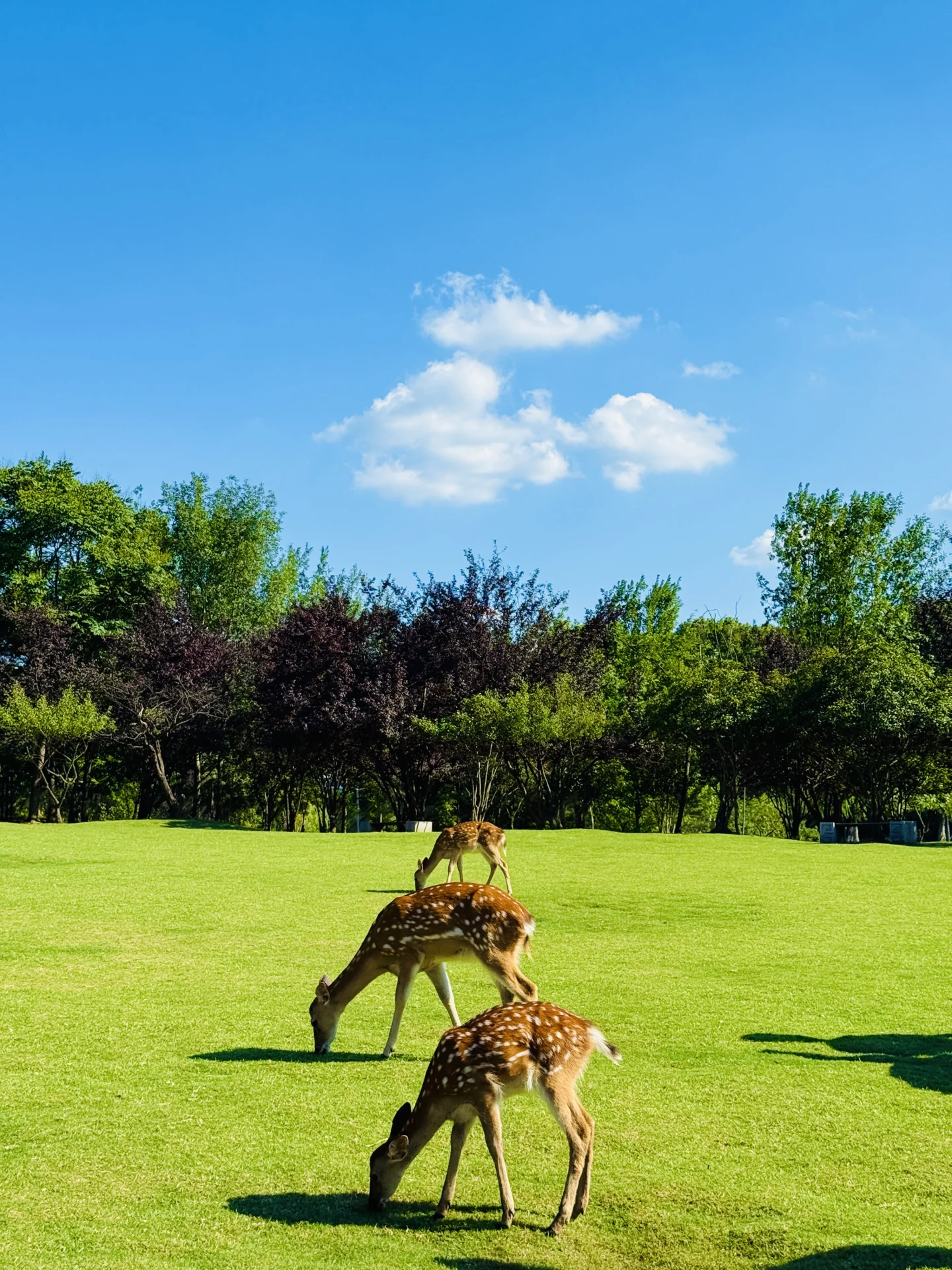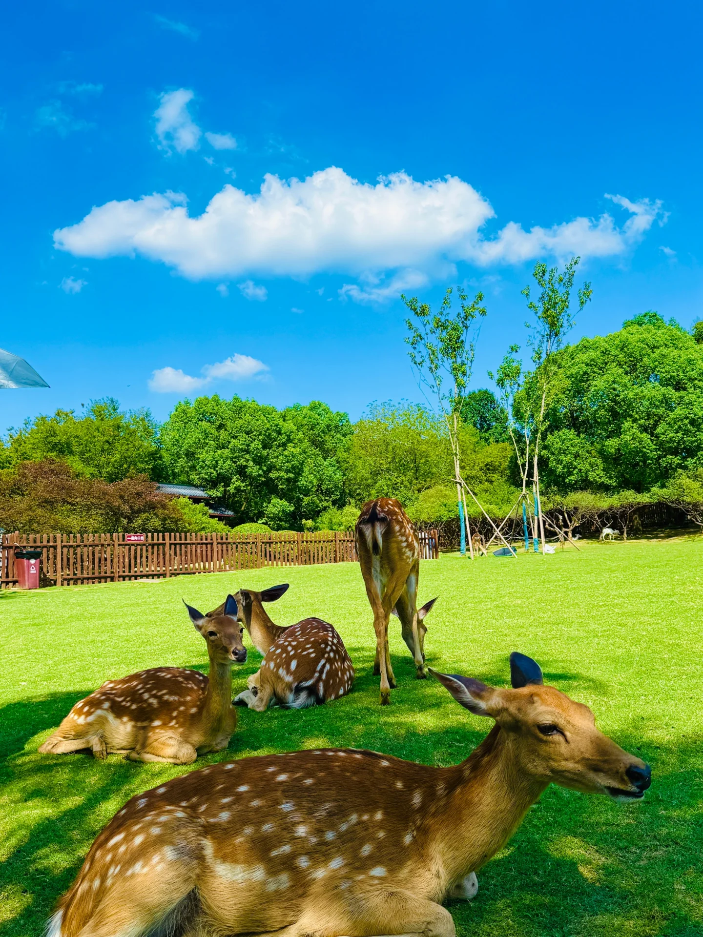 里面有大片的绿草坪 好多的小鹿🦌🦌🦌