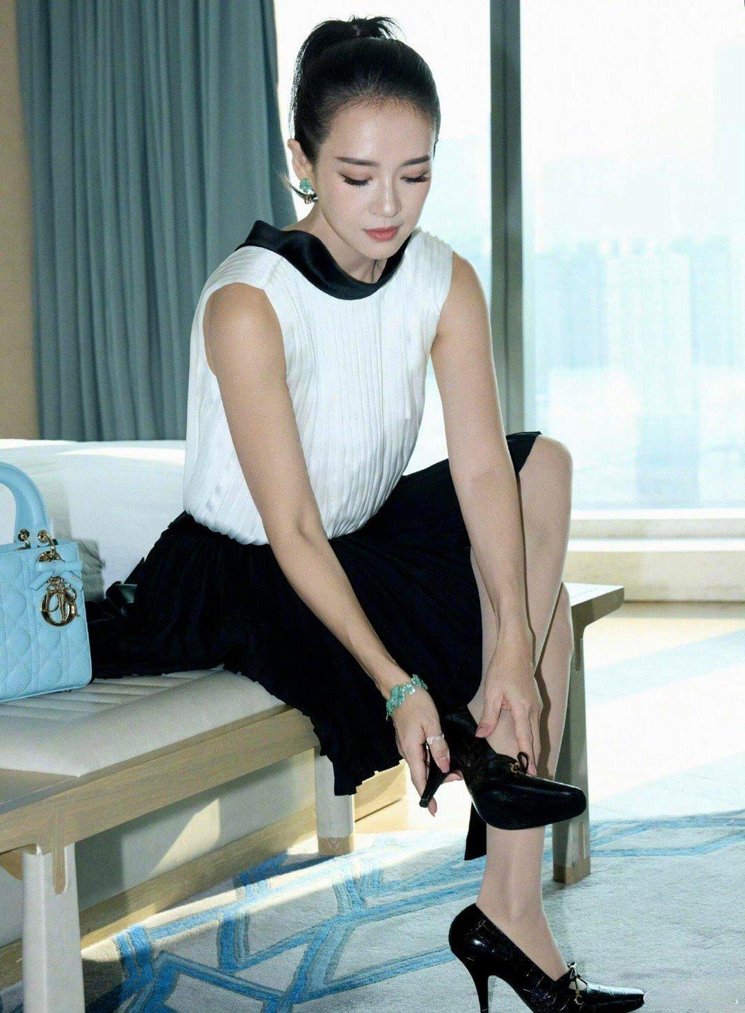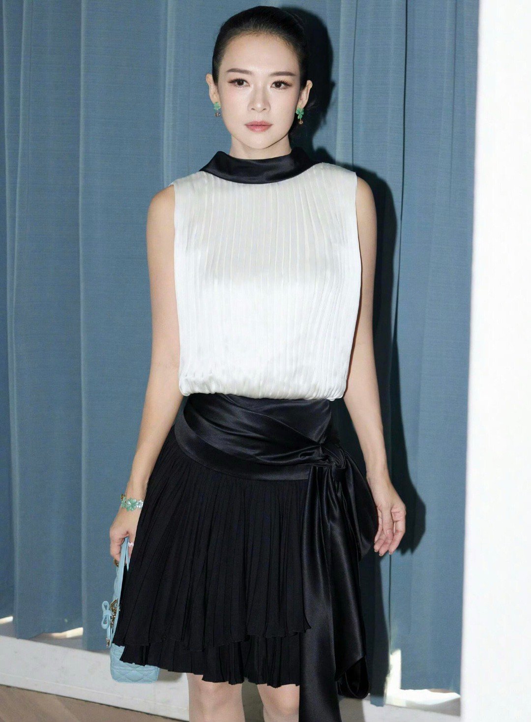 章子怡的优雅,永远藏在细节里章子怡这组造型又让人刮目相看!黑白经典配色的穿