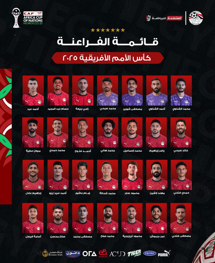 虎扑12月11日讯埃及国家队公布了非洲杯最终名单。