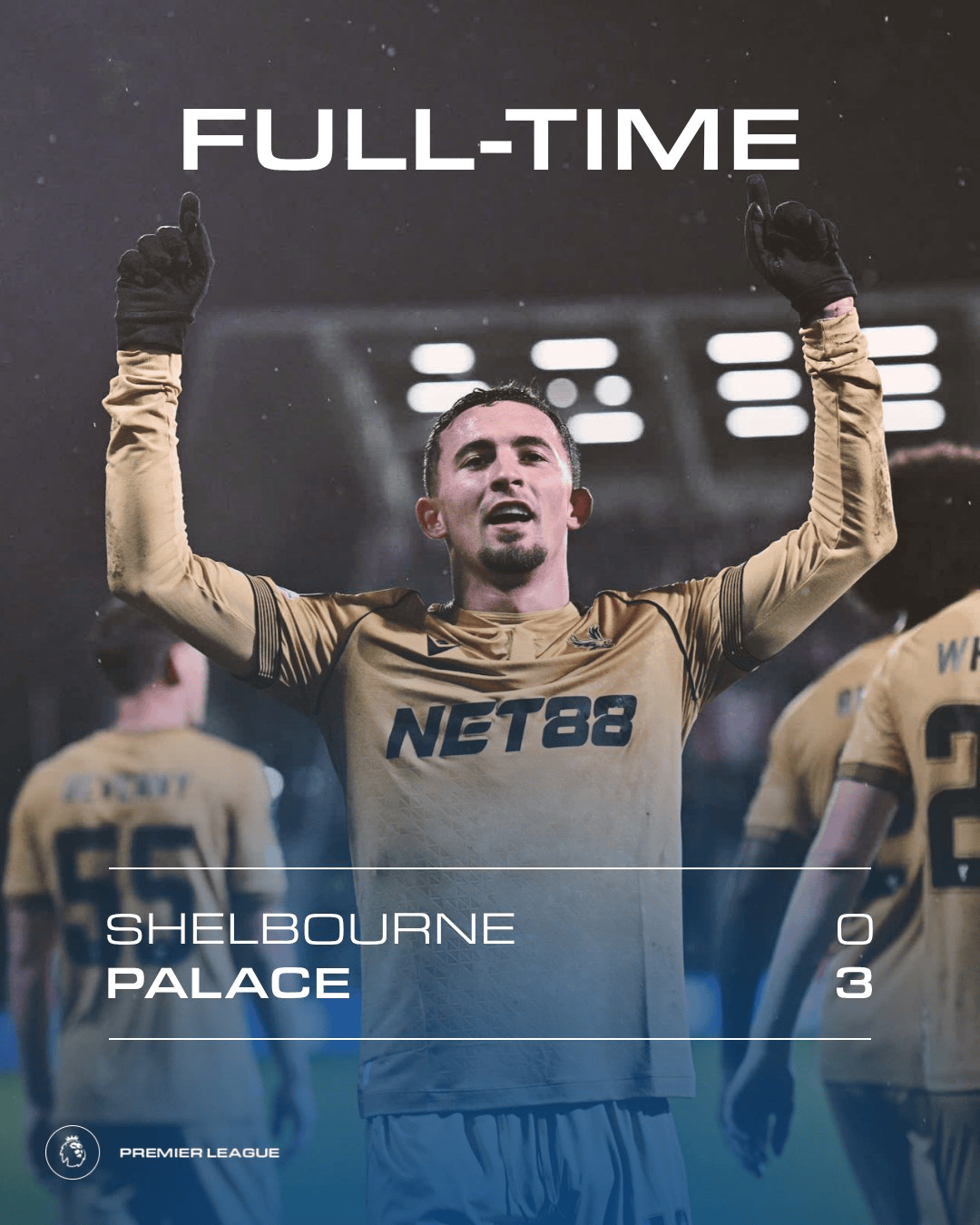 水晶宫在客场占据碾压级别优势,早早由乌切、恩凯蒂亚、皮诺打进三球后,水晶宫鸣金收兵,低消耗结束比赛。