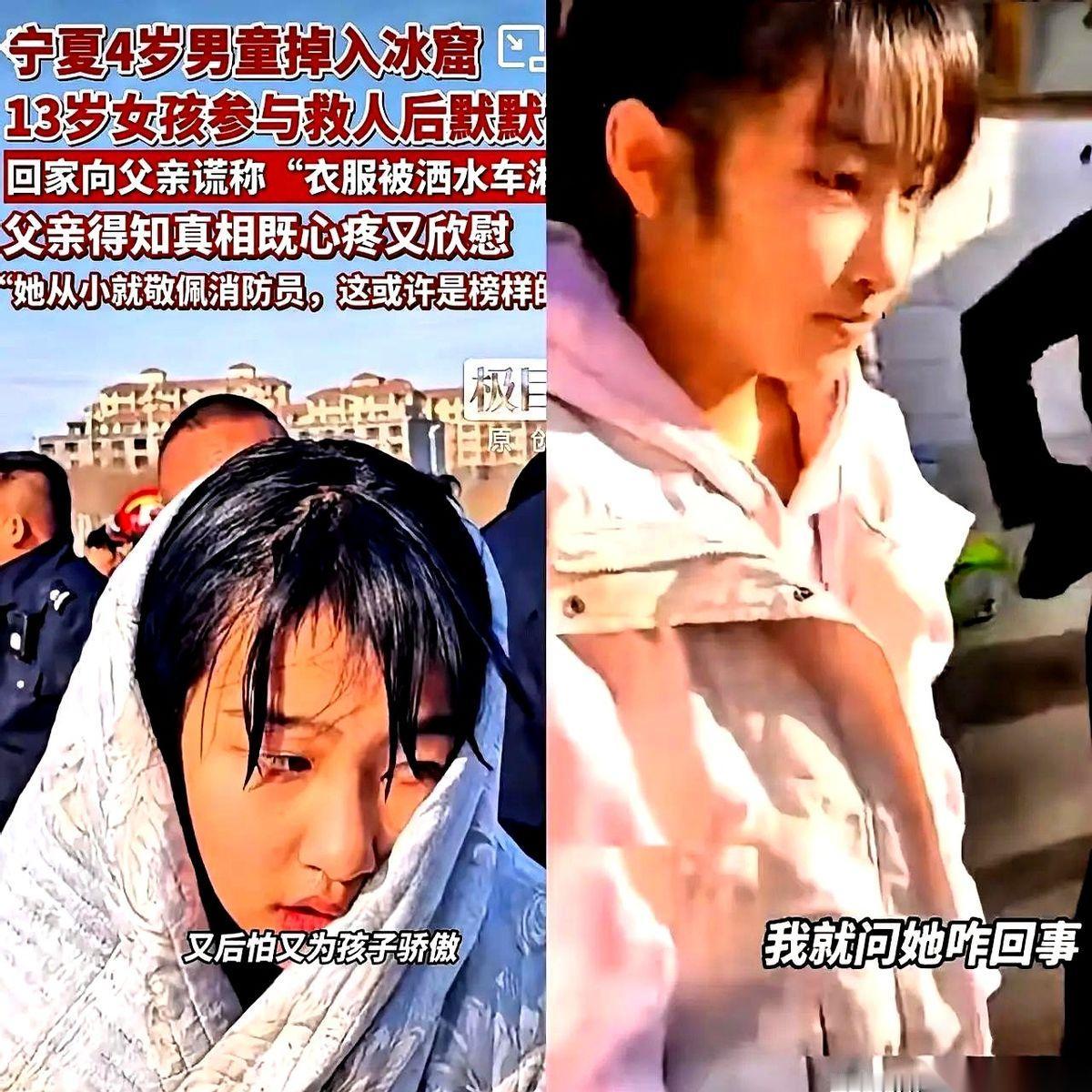 真不敢想,零下十几度的天,一个13岁的孩子,就那么跳下去了。 我的天。 那一刻他脑子里在想什么?估计啥也没想。就是本能。看到有人在水里挣扎,就下去了。 这比什么深思熟虑、权衡利弊的“勇敢”要高级一万倍。 我们这些成年人,天天琢磨的是什么?是风险,是得失,是“值不值”。 换我在岸上,我可能第一反应是掏手机,或者大喊,或者盘算一下自己会不会游泳、水有多深…… 可人家一个半大孩子,直接给出了最简单、也最牛逼的答案。 都说这是家庭和学校教育得好。 废话,肯定好啊。但这已经不是“教育”两个字能概括的了。 这叫什么? 这叫根上正。是在骨子里种下了一颗种子,叫“善良”,叫“担当”。平时看不出来,一到关键时刻,它自己就发芽了。 说白了,他爸妈这辈子最成功的作品,不是什么事业,不是多少财富,就是养出了这么一个儿子。 一个能在冰水里,捞起一条人命的儿子。 这口气,能顶一辈子。 看到这种新闻,心里就觉得热乎乎的。 觉得这世道,还是有光的。 这光,不在什么宏大的地方,就在这么一个普普通通、顶天立地的少年身上。
