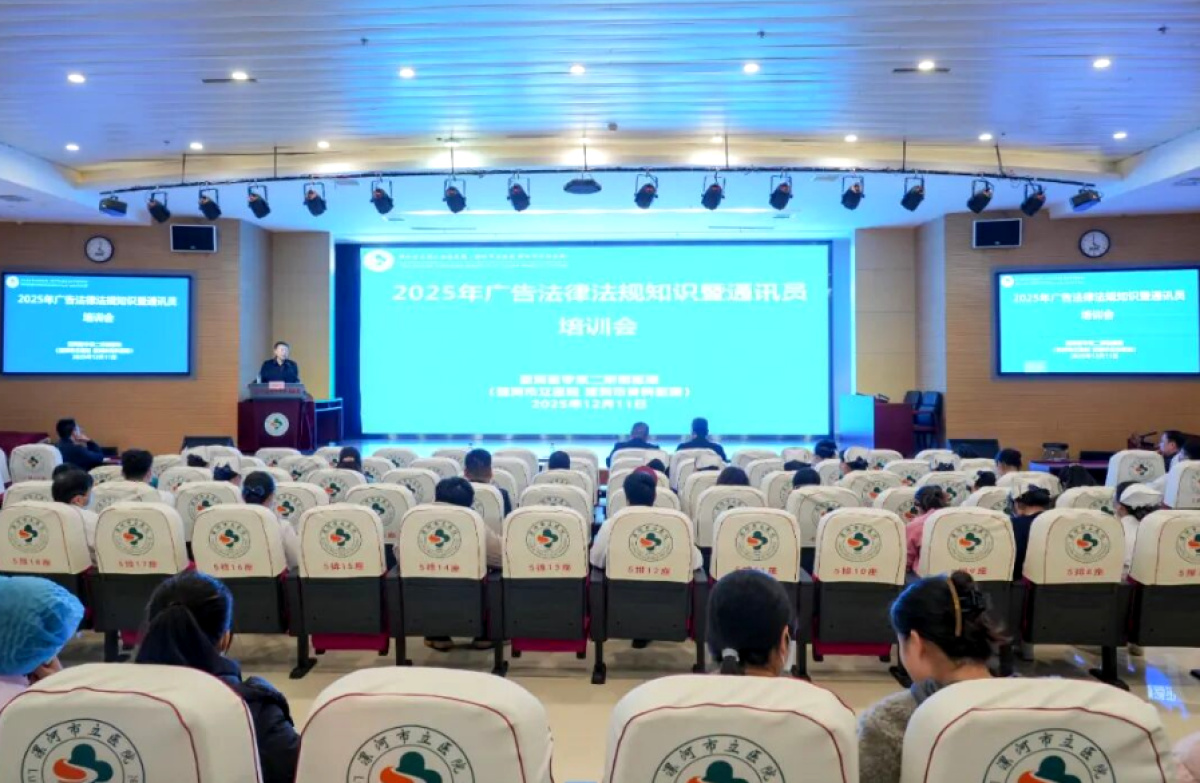 为进一步加强通讯员队伍建设,推动全院文化宣传工作,增强医院核心竞争力,12月11日,漯河医专二附院(漯河市骨科医院、漯河市立医院)举办2025年广告法律法规知识暨通讯员培训会。本次培训特别邀请漯河市市场监督管理局广告监管科科长石俊峰授课,院纪委书记刘国锋出席并主持,全院各科室通讯员及医务人员代表参会。