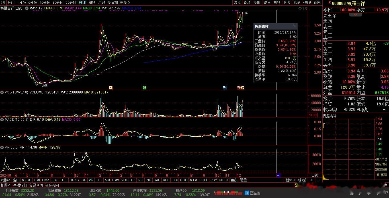 【财富晚茶】主力资金(12.12):追寻沪深北三市主力流入前10股票导语:作者系《网易号》优质财经领域创作者。曾经原创作者和知名网易号旅游领域创作者。大跨度行业等的写作,颇受网友喜爱。作品发表于2025.12.12.10:18 优雅端庄晚风。编者的话:追寻盘面:根据2025年12月12日市场数据:主力资金:流入前10股票:按流入金额从高到低排列。今天主题是:【财富晚茶】主力资金(12.12):追寻沪深北三市主力流入前10股票。与全国投资者和粉丝友友一起分享,殷切期待投资者精彩点评建议问题。最新市场:新鲜出炉:2025.12.12.10:18主力资金股票参考。涨跌个股:偏重其中:沪深北证、主力占比、今日排名等。资金板块:排名前三:化学制剂、基础软件、军工电子等领域。一、主力资金:市场前三名佳股票600868 梅雁吉祥600192 长城电工600855 航天长峰二、主力资金:流入前10名的股票最新K线图统计:即时日期:2025.12.12.10:18600868 梅雁吉祥600192 长城电工600855 航天长峰002200 *ST交投600165 *ST宁科600420 国药现代003020 立方制药688695 中创股份300636 同和药业601366 利群股份追寻盘面:根据2025年12月12日市场数据:主力资金:流入前10股票:按流入金额从高到低排列:三、今主旋律:前10名市场表现股最新K线图统计:即时日期:2025.12.12.10:18四、 创作不易:优质网易财经作者投资投机迷茫之中:给予尽可能有帮助:资本市场风险自负。(优雅端庄晚风《网易号》财经领域创作者和原创作者 违者必究)