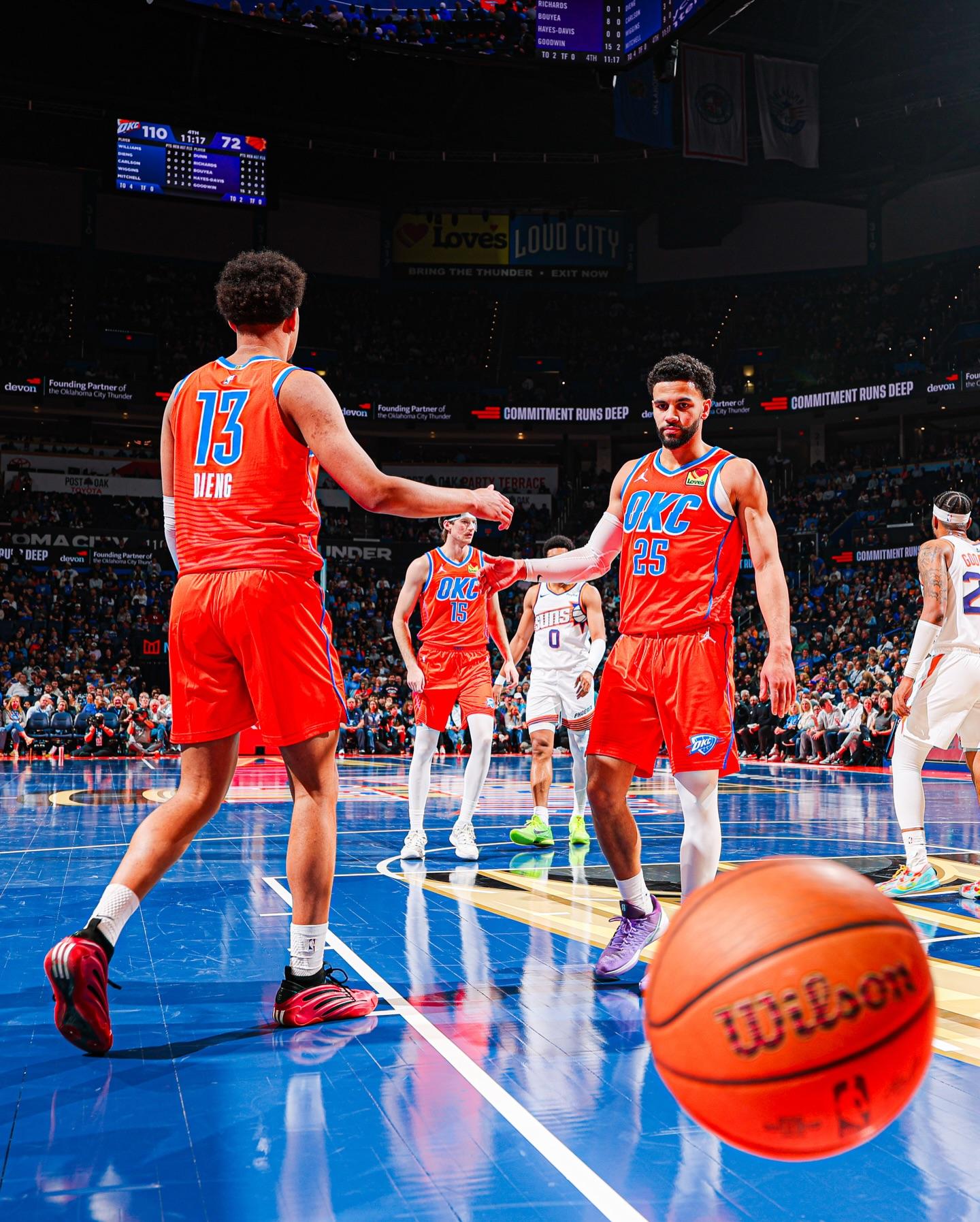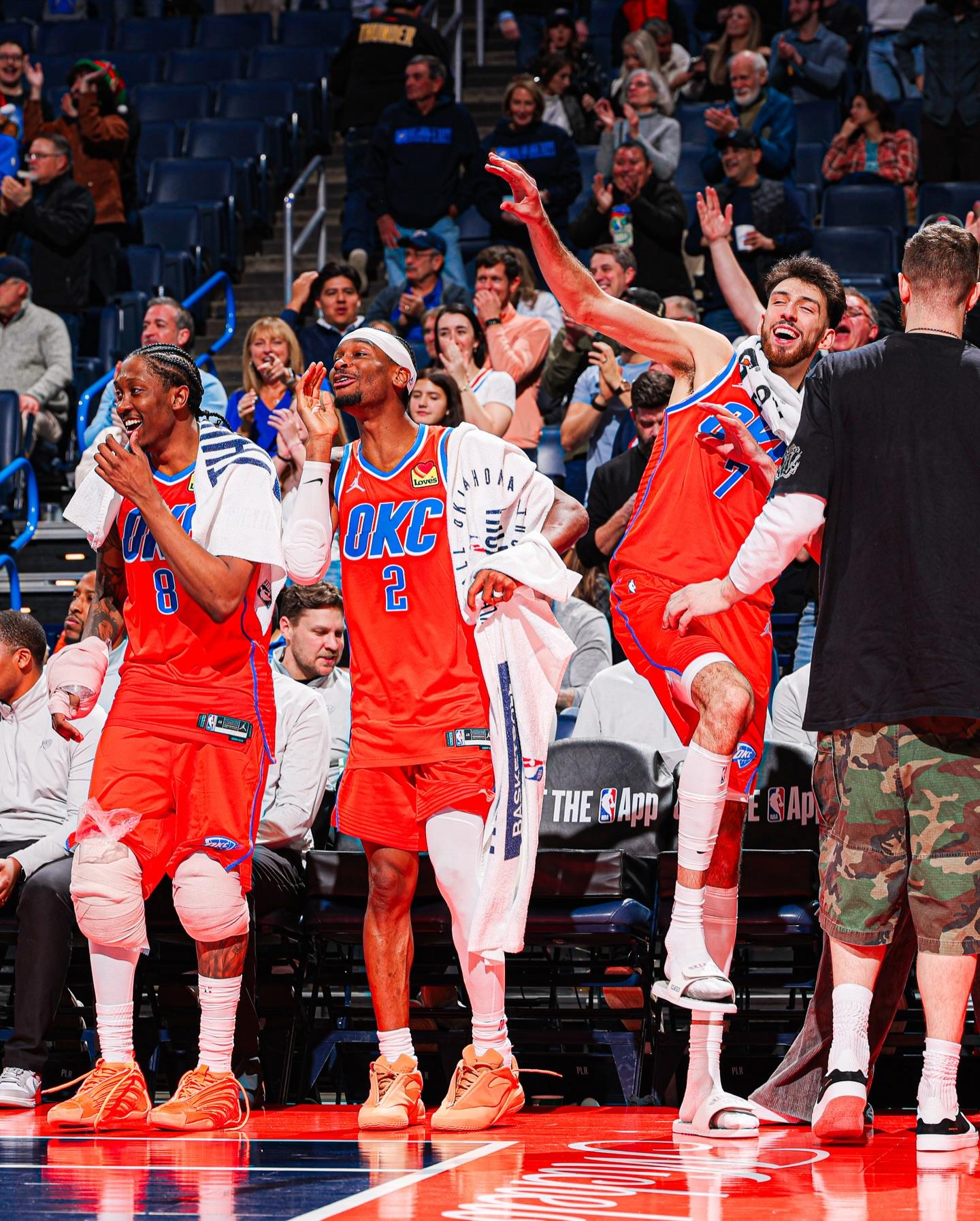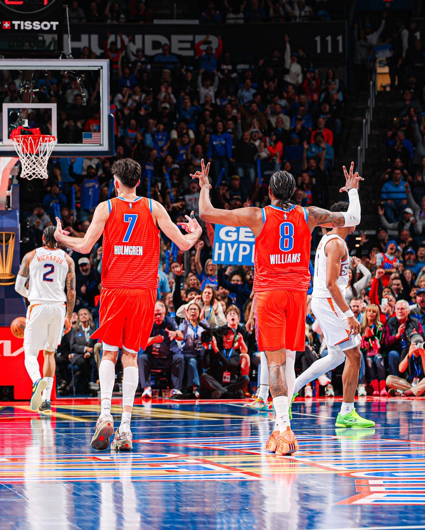 虎扑12月12日讯今日,雷霆社媒晒出昨日NBA杯淘汰赛战胜太阳的比赛精彩瞬间组图,并配文: