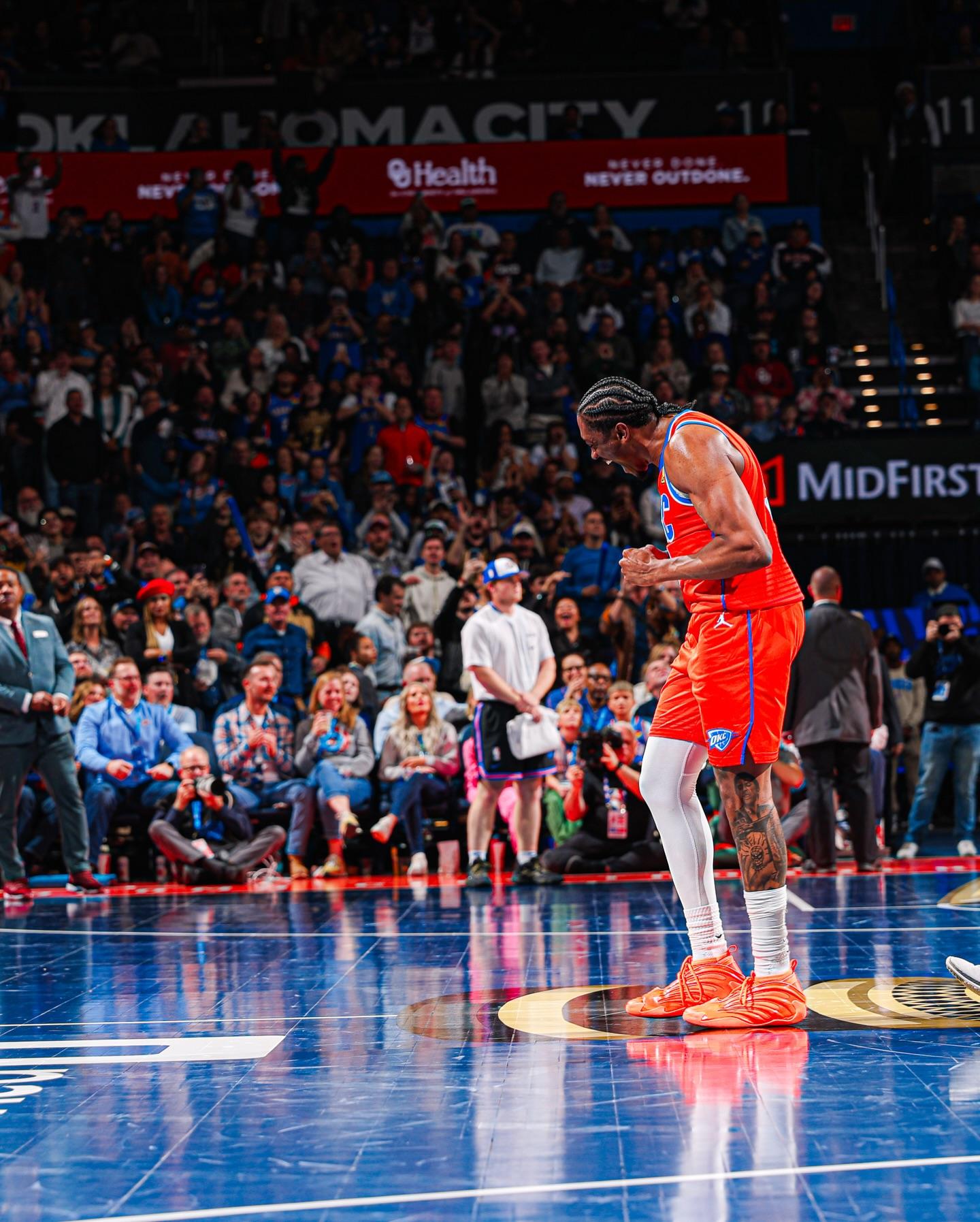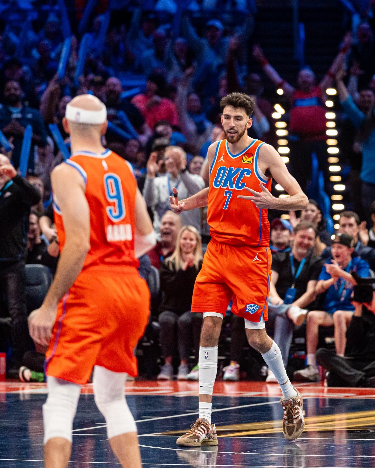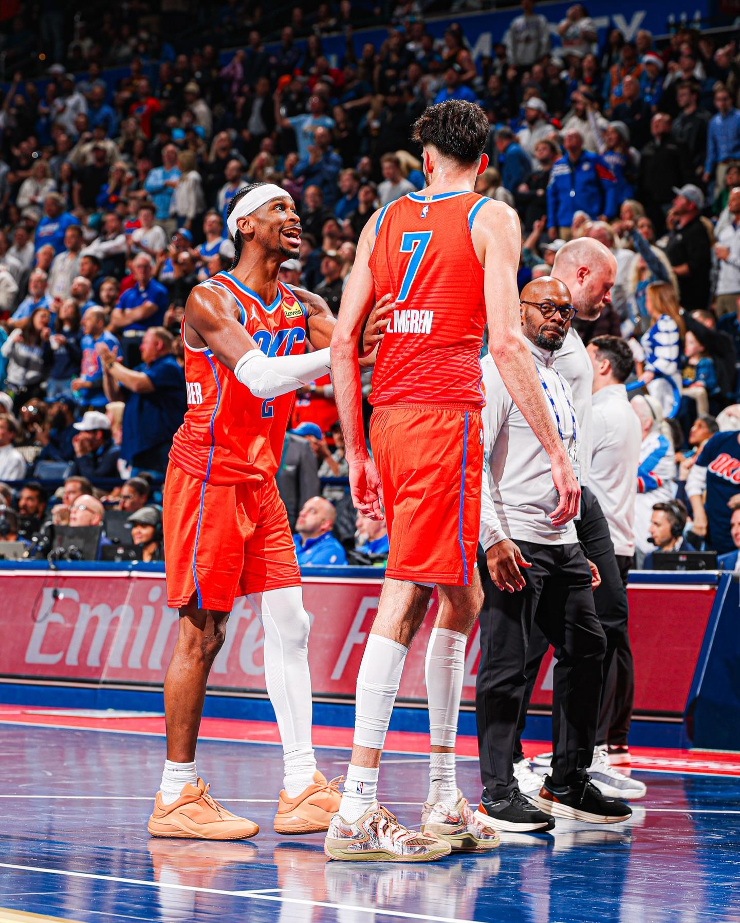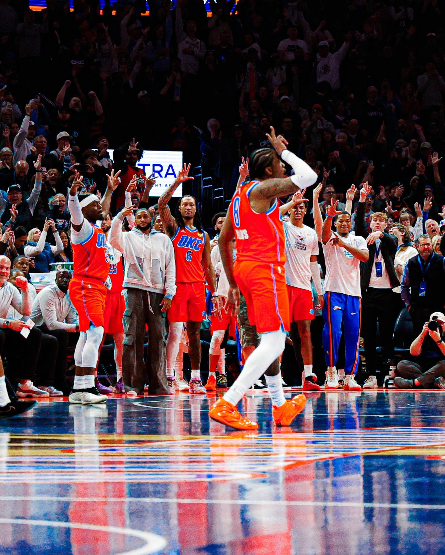 虎扑12月12日讯今日,雷霆社媒晒出昨日NBA杯淘汰赛战胜太阳的比赛精彩瞬间组图,并配文: