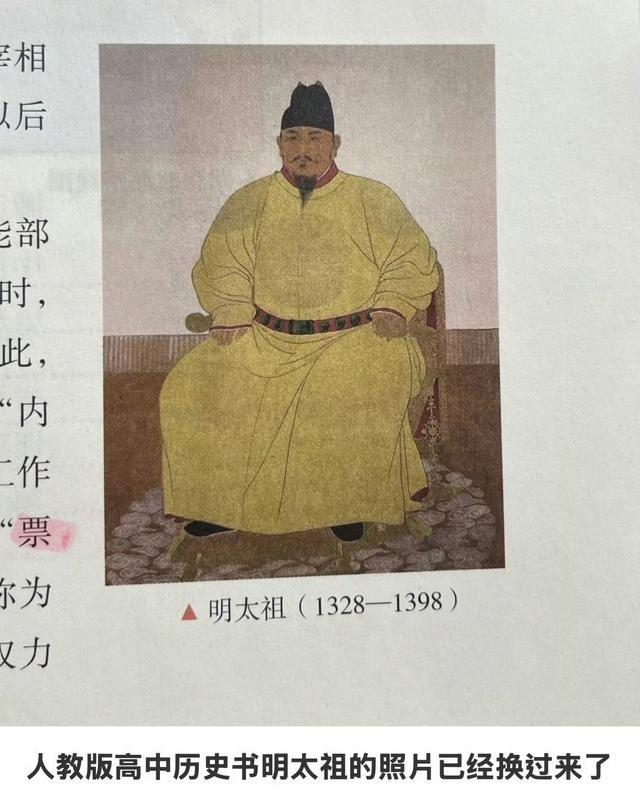 教科书上的朱元璋画像换了,猪腰子脸换成威武略胖的脸。他当和尚的时候几次饿晕在街上