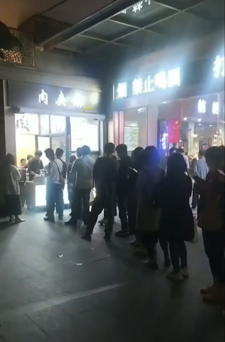 一到饭点,学生排起长队等候肉夹馍