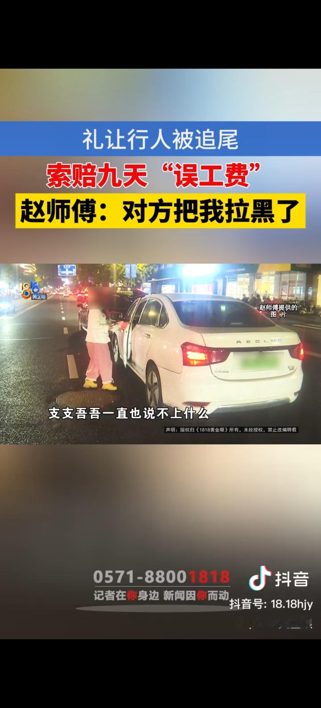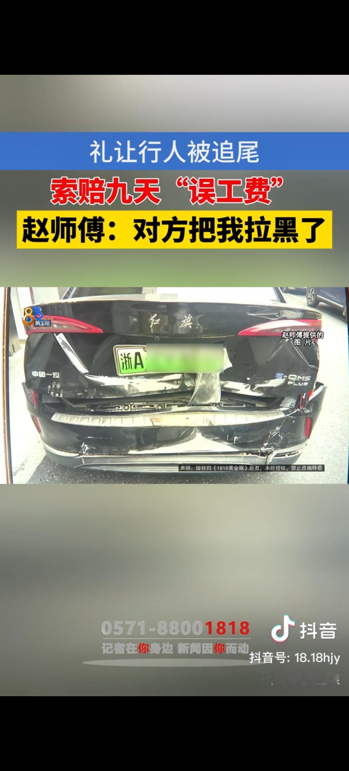 浙江杭州,男子是一名网约车专车司机,停车礼让行人时,被后方车辆追尾,后车全责,走保险,付了14940元帮男子修了车。可男子停运了9天,他说自己每月收入大概是13000到14000元,每天的流水是600多元,要求对方付停运费。后车女司机说可以拿100元一天给男子,男子没同意,等他再联系对方时,对方的做法却让男子很失望。 网约车司机赵师傅回忆,当时他在杭州拱墅区凤起路附近礼让行人,车停在原地没动,后方车辆突然追尾,把他的红旗车车尾撞得严重变形,后备箱、保险杠和四个车灯全报废了。交警判定后车女司机郭女士全责,走保险修了车,花费14940元。 可车修了9天,这9天赵师傅没法接单。他每月收入一万三四,每天流水600多,就找郭女士要停运损失。郭女士只愿意一天给100元,赵师傅没同意。等他再联系时,发现自己被拉黑了,电话也打不通。 赵师傅给记者看自己的收入记录,每个月都稳定在一万三到一万四。他很无奈:“我靠跑车吃饭,停一天就少一天的钱,对方全责,赔点停运损失不是应该的吗?” 有同行觉得赵师傅委屈,“我们这行,车坏了没法跑,损失真不小。”但也有人觉得,保险已经出了修车钱,郭女士可能觉得再赔停运损失不划算,所以才回避。 现在赵师傅很纠结,要是走法律途径,费时费力,最后能拿到多少也不确定;可就这么算了,又觉得憋屈。这事也让其他网约车司机犯了难,以后遇到类似事故,停运损失到底该怎么要,成了个难题。 各位读者你们怎么看?欢迎在评论区讨论。 来源:1818黄金眼 2025-12-10播出