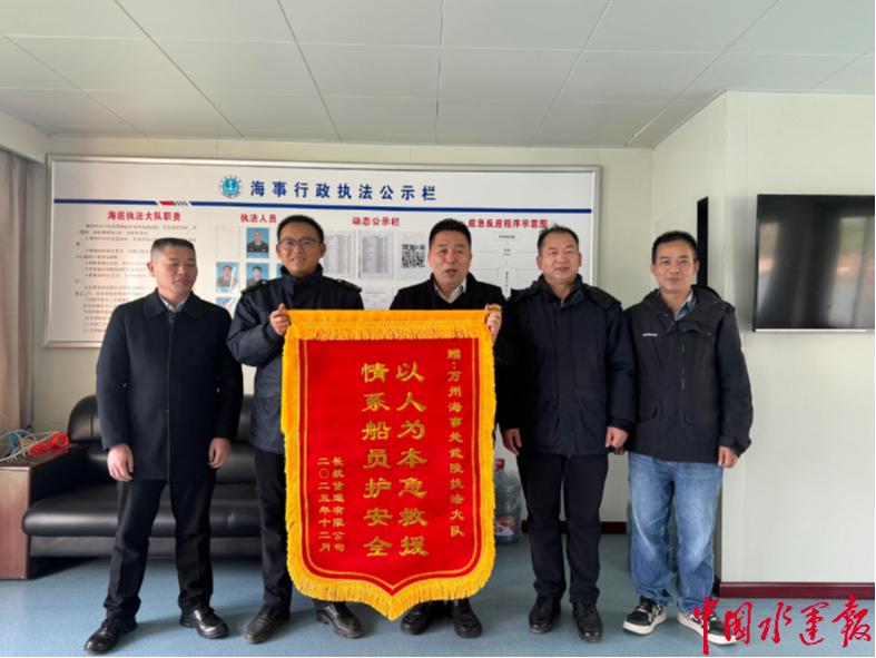 2025年12月11日,长航货运有限公司将两面满载谢意的锦旗,分别送至万州海事处新田、武陵执法大队,以此表达对两大队专业监管、暖心救援的诚挚谢意。