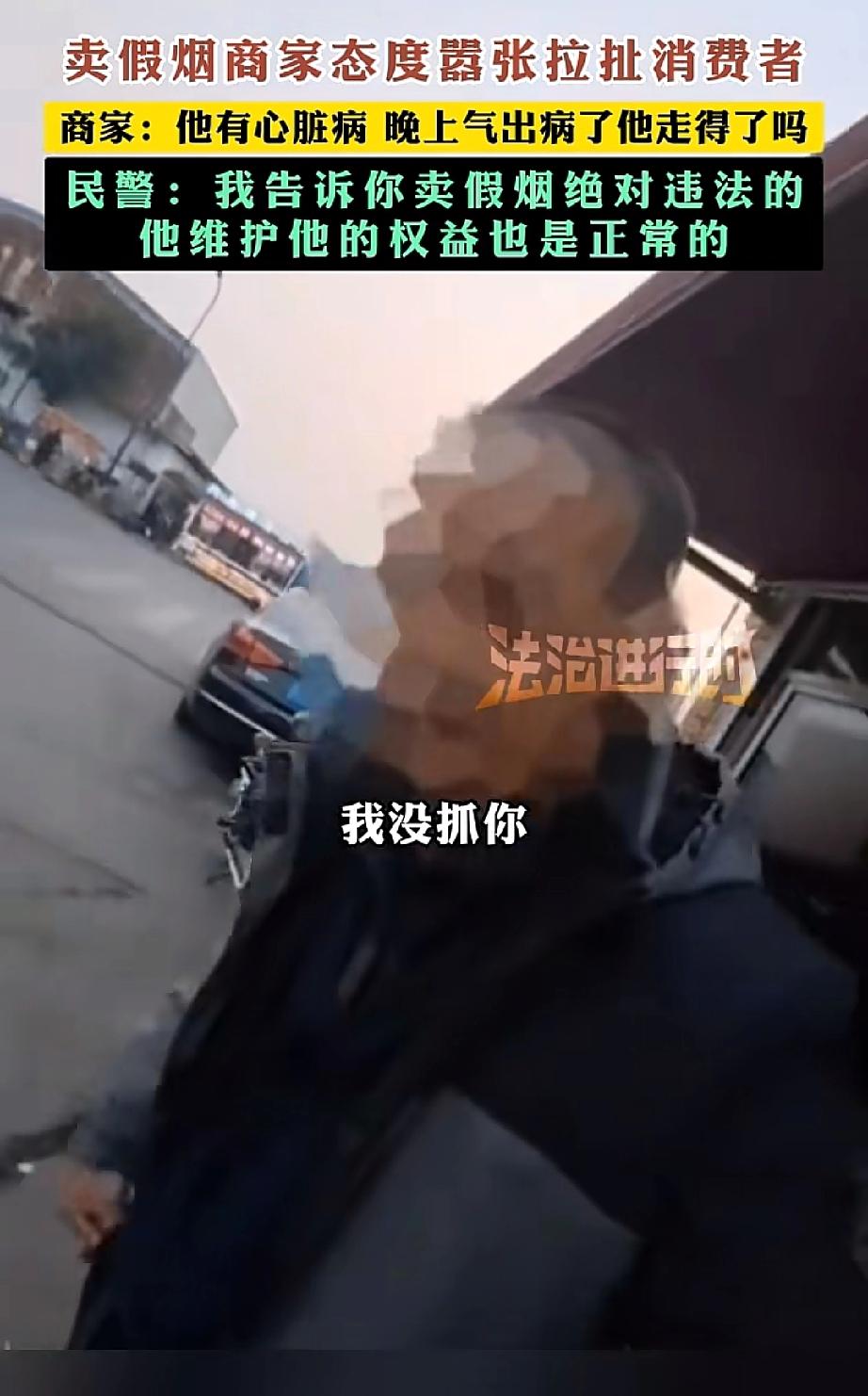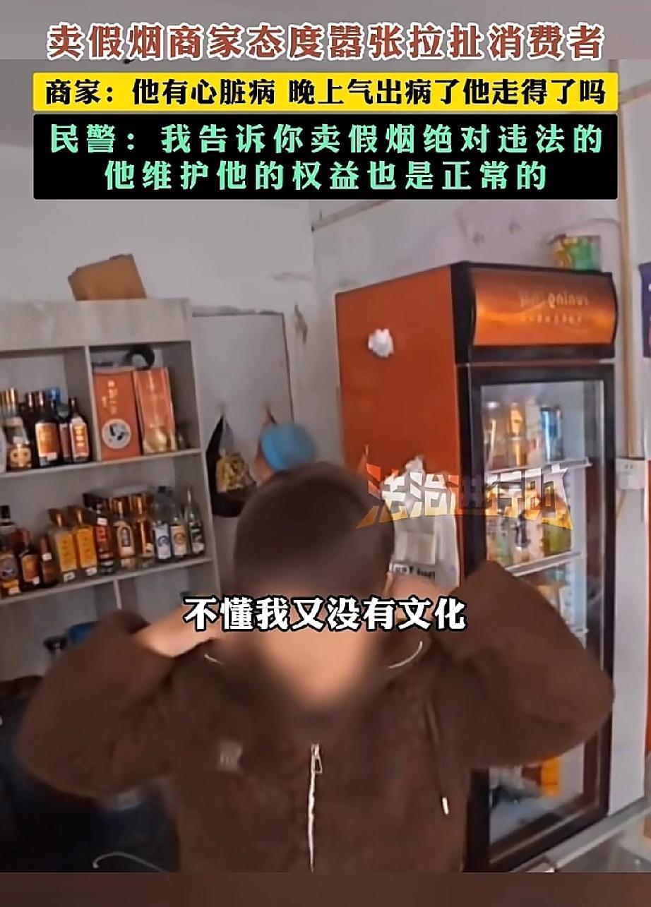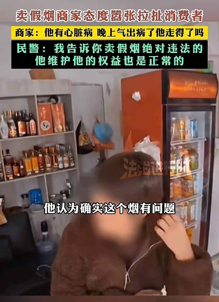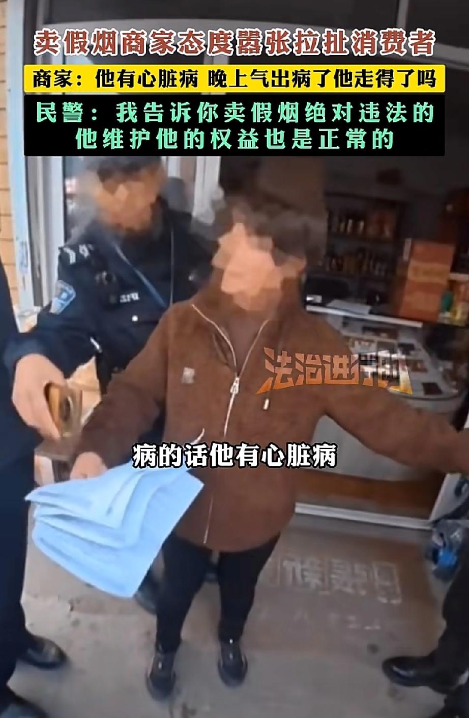 杭州,一小伙到食杂店买了一包烟,回家抽了几口,感觉味道不对,怀疑是假烟。次日,他再次前往该店,买了同样的烟,随后报警维权。 警察赶到现场,找来专业人员对香烟进行检测后,询问店主:“消费者反映这烟有问题,初步鉴定确实存在问题,你是否知道自己卖的是假烟?” 店主扭过头去,说道:“我哪能知道啊,我没什么文化。” 接着,店主拿出手机拍摄小伙。小伙见状,说道:“你拍吧,你拍吧,你卖假烟还有理了,正好给你这店铺好好宣传宣传。” 店主被激怒,朝着小伙冲过去。 小伙赶忙后退,惊慌地问道:“你要干什么?” 店主大喊:“我要挠你,我要挠你!” 小伙急忙躲避,店主在后面紧追不舍。 店主的老公也出来拉住小伙,质问:“你在干什么?” 小伙回应:“你别碰我,我在取证。” 店主拿出医院的诊断书,威胁小伙道:“我老公有心脏病,今天要是发病了,你别想走。” 自始至终,小伙都未主动与店主及其老公发生肢体冲突。 警察上前拉开双方,对店主说:“你老公有心脏病,那是之前的事,和小伙无关。你卖假烟本就违法,别这么嚣张。” 小伙给警察竖起大拇指! 如今香烟管理十分严格,均由专业人员配送,一般不会出现假烟。所以,店里出现假烟,很可能是店主为谋取更多利益,从其他渠道进货所致。 然而,店主并未认识到自己的错误,为掩盖卖假烟的行为,竟撒泼耍赖,来应对小伙的维权之举。 要明白,如今是法治社会,每个人行事都应有底线。 按章办事,倚老卖老的行径根本就行不通。 来源:法治进行时