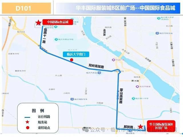 途经站点:华丰服装城B区前广场、临沂大学南门、中国国际食品城