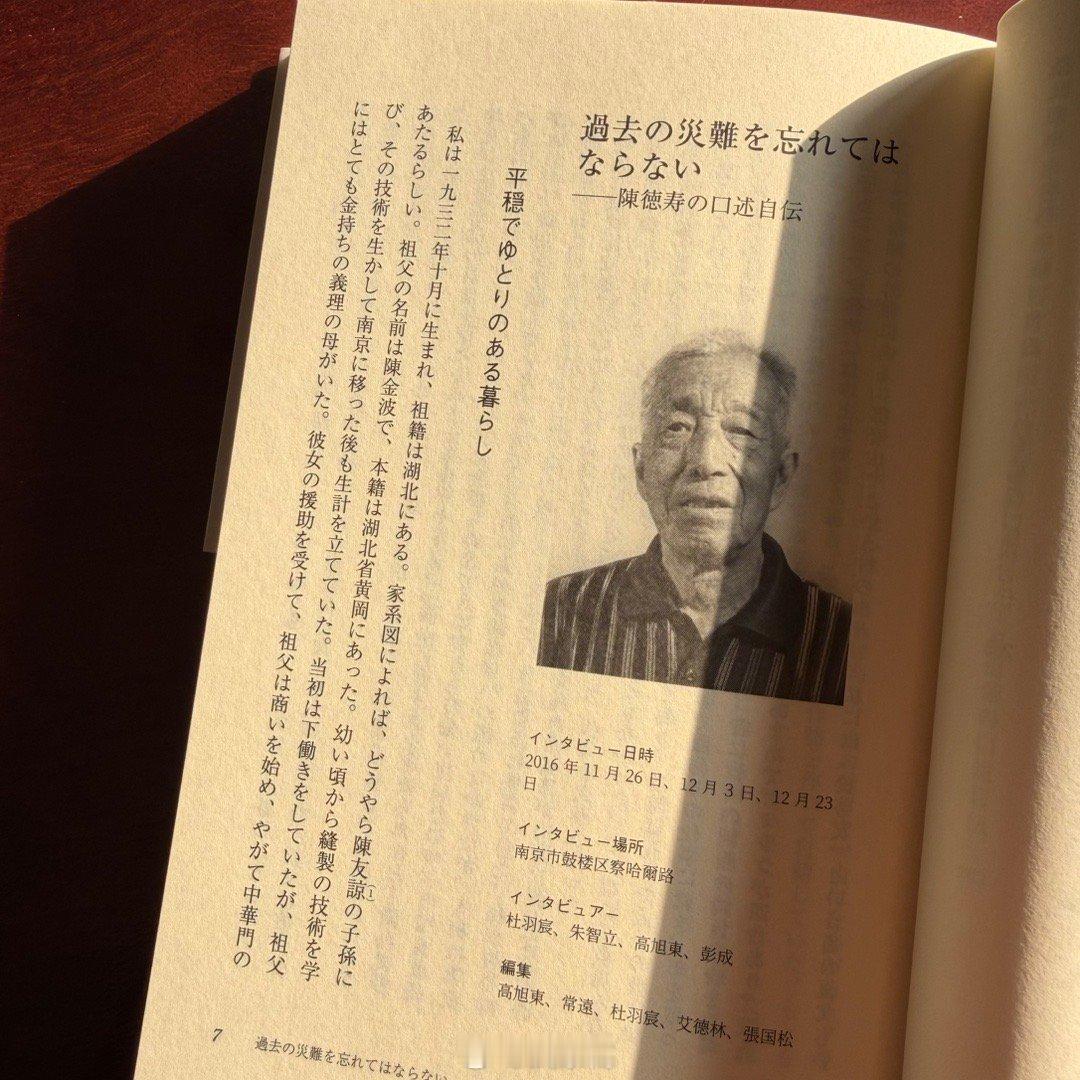 在国家公祭日前,收到了我们《被改变的人生:南京大屠杀幸存者口述生活史》一书的日文版。2017年这份口述历史完成出版,最后一批幸存者(50位)被战争和屠杀蒙上阴影的一生被记录下来。我们选择了其中30位的口述,编辑出版。八年过去了,今天这份记录被翻译成日语,在日本出版,这样可以让更多的日本民众和学者了解这一段历史。这是一份平实的个体生活记录,是最具体的生活记忆。这样的口述史采编,就是要最真切的记录历史的细节,呈现真相,这不是为了记录和宣扬仇恨,而是为了记录一份历史教训,记录军国主义给人类造成的灾难,它对每个具体个体的伤害,是倾其一生都无法被抚平的。记住历史,认清是非,才是走向未来的起点。。。