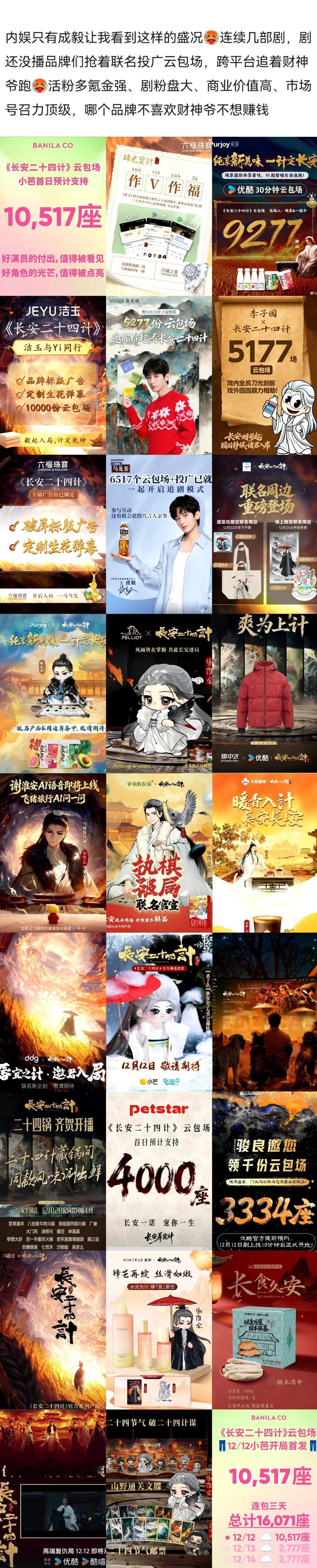 成毅长安二十四计开播前40➕品牌招商创优酷记录🔥还有几十个品牌ip联名包场!行