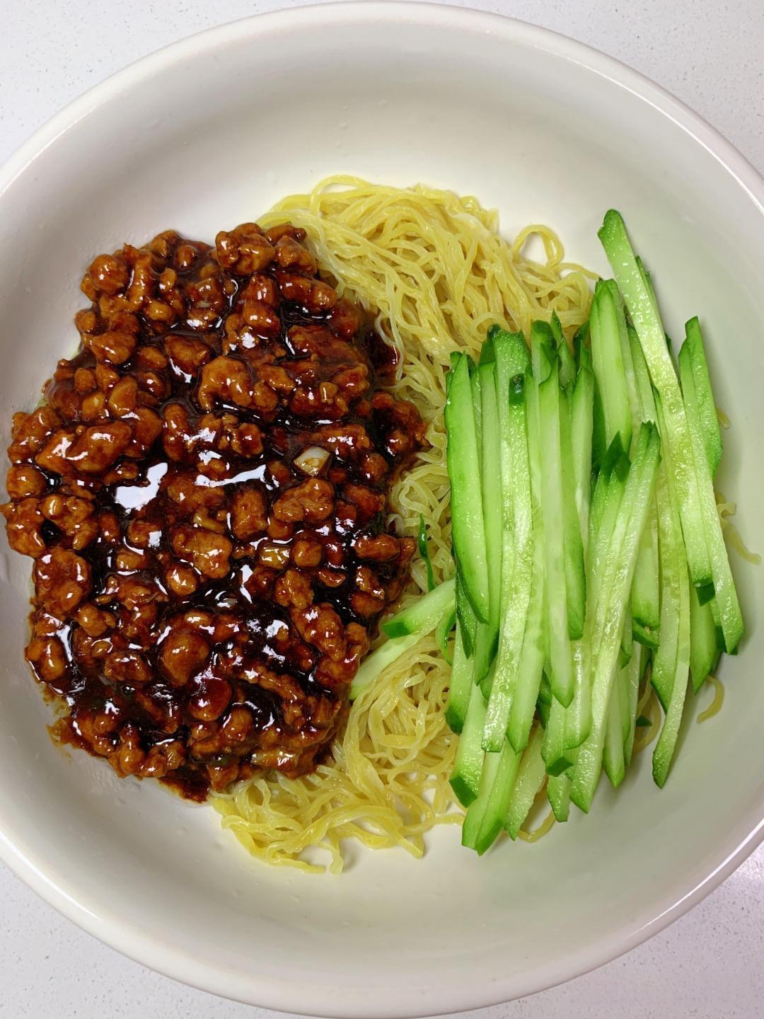 今天点了外卖,一份炸酱面,一份白菜肉水饺,总共花了四元,二十分钟送上门,饺子,面
