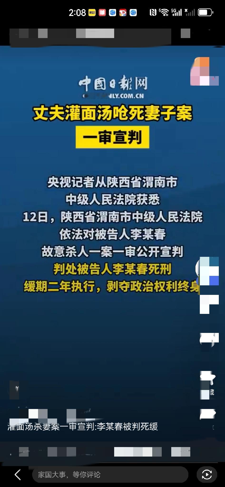 灌面汤杀妻案一审宣判:凶手被判死缓! 这事儿看完浑身发毛!夫妻开面馆闹矛盾,男子酒后直接用钢尺、皮带打妻子,还端70度的热面汤往人身上浇,甚至把人往面汤锅里拖,结果妻子被面汤呛得窒息没了。 今天案子判了,就给了个死缓,理由是男方自首、女方网上交友有过错,还拿到了亲属谅解书。可故意杀人手段这么狠,一句“对方有错”就能轻判?这结果真能让人信服吗?热汤灌妻判死缓引热议