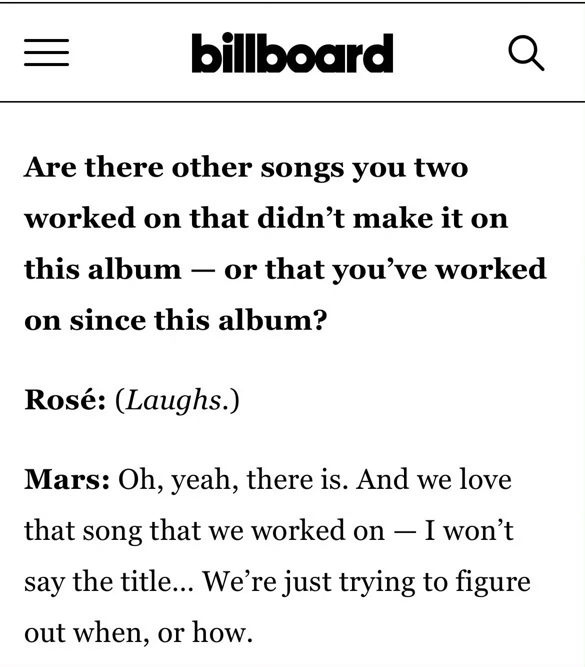 朴彩英火星哥还有一首合作曲朴彩英火星哥还有一首歌没发据Billboard报道,B