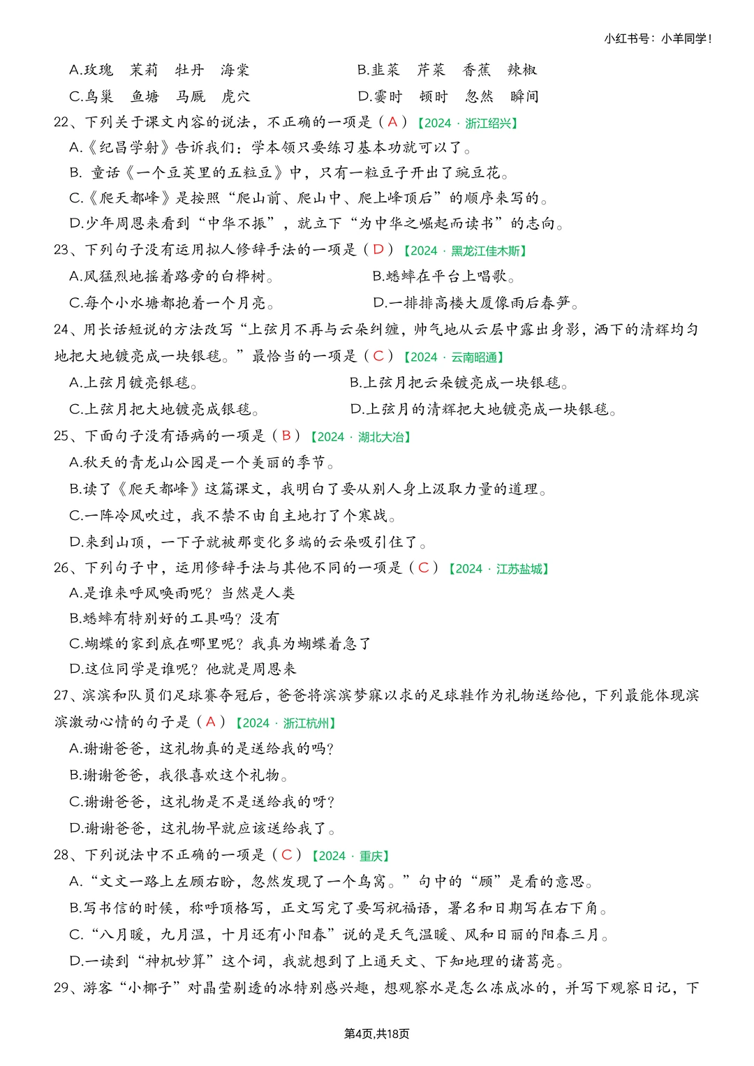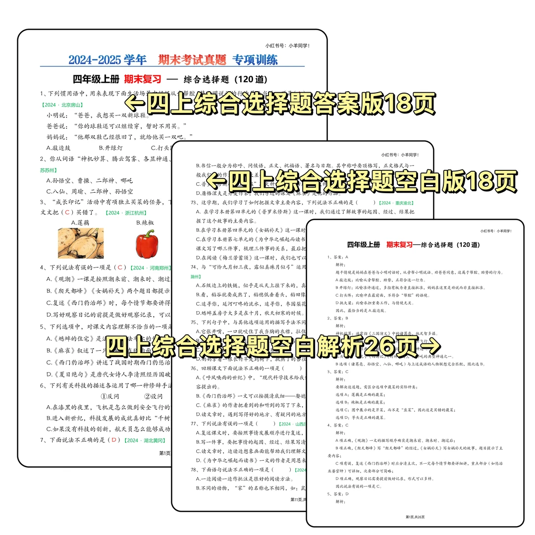 🎈这套习题参考了近百个地区的2024-2025学年期末真题卷。很多地区都是相似题型,我选取了其中重中之重的,超高频考点的试题进行的总结。