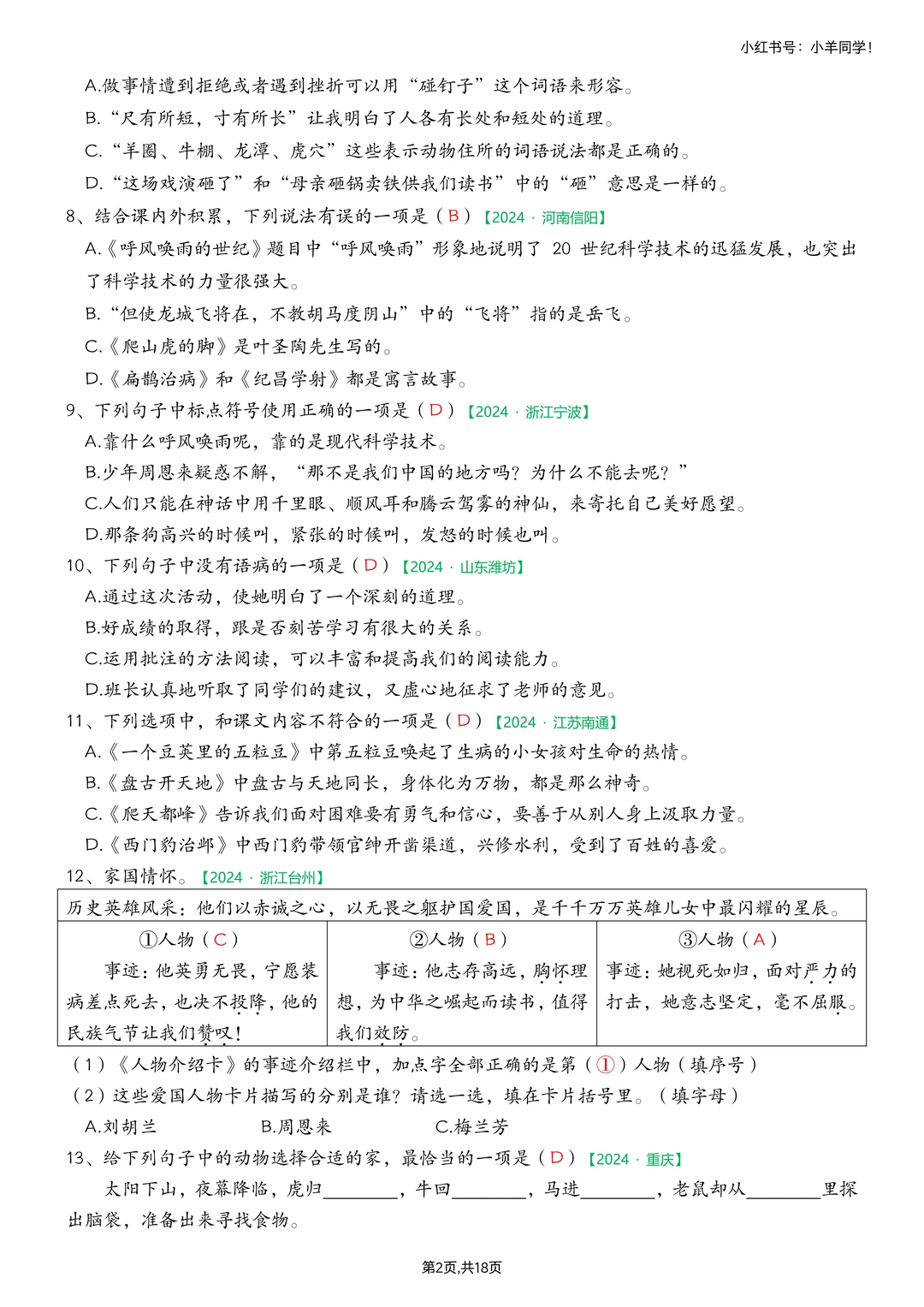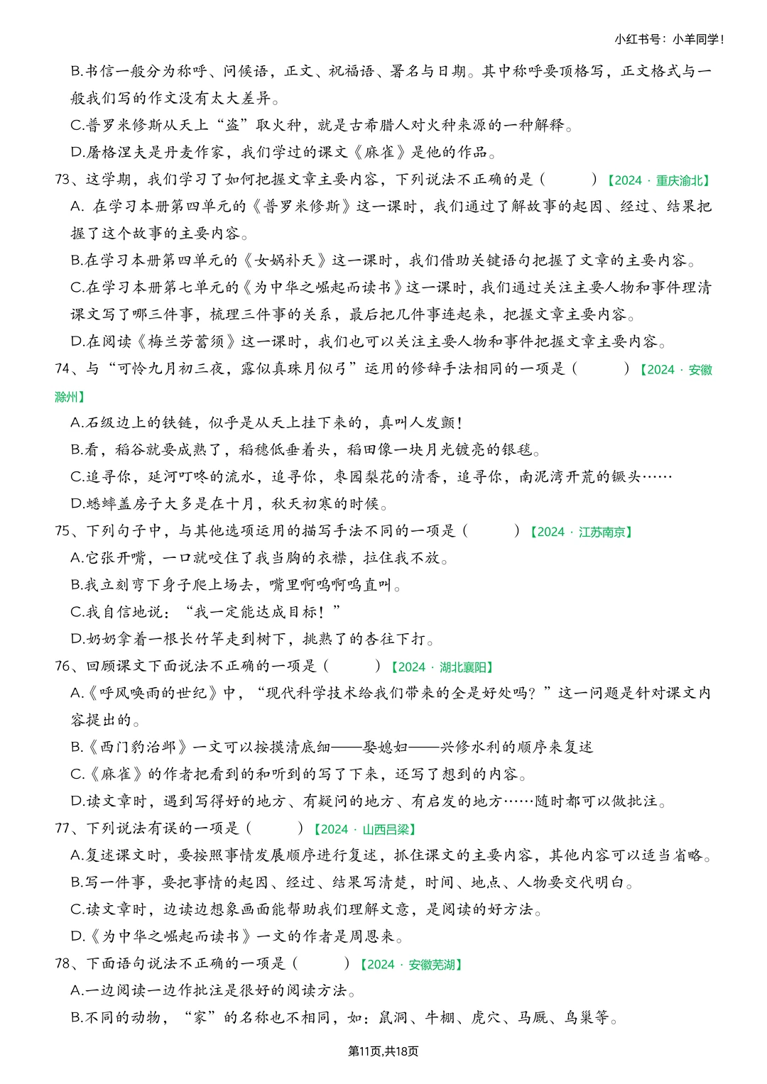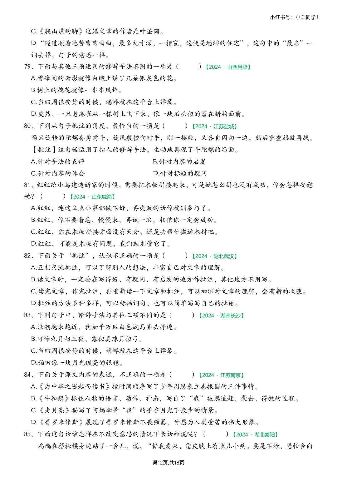 【不包含字词选择题、古诗+名言名句选择题,所以和其他两份选择题内容并不冲突】。