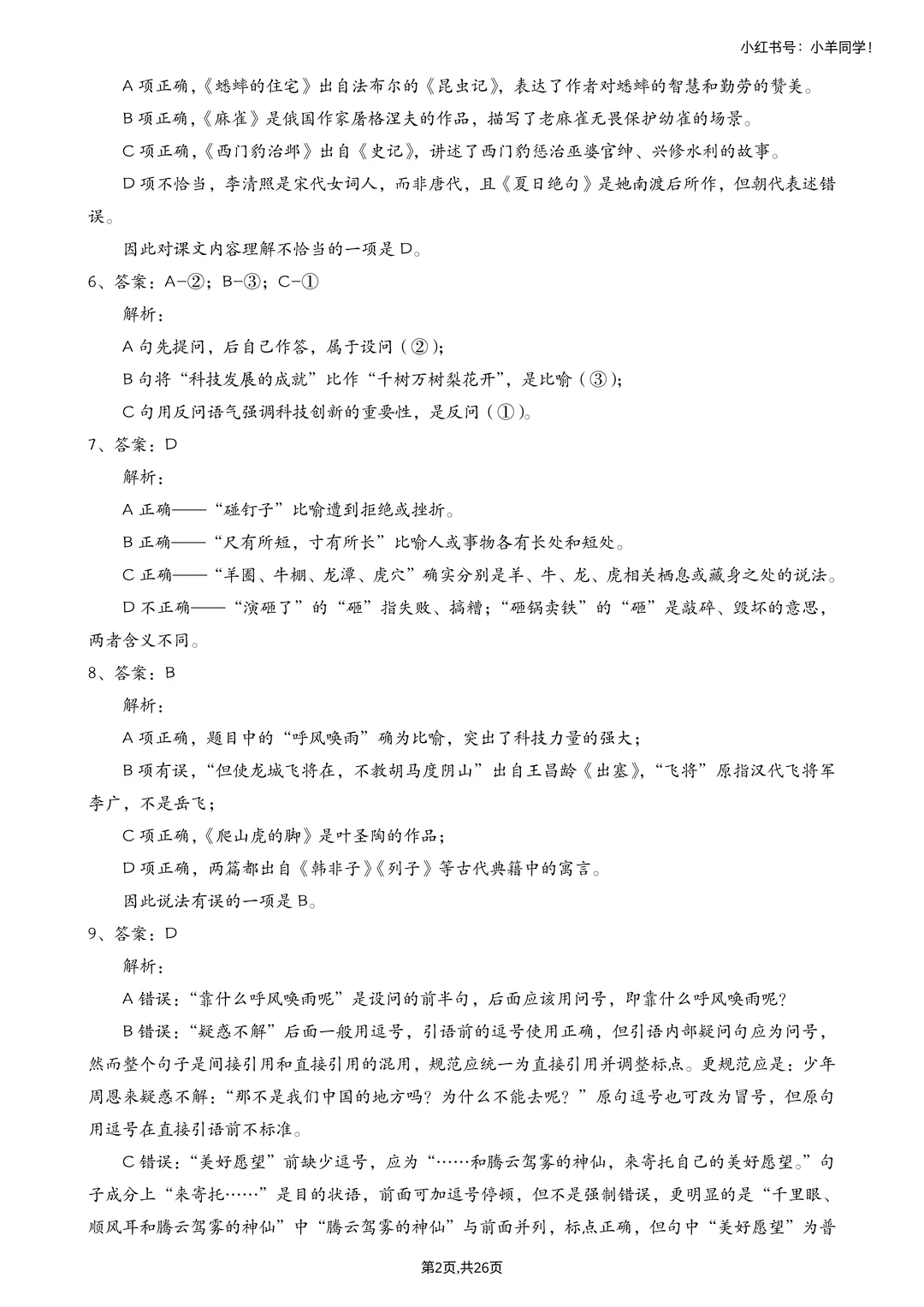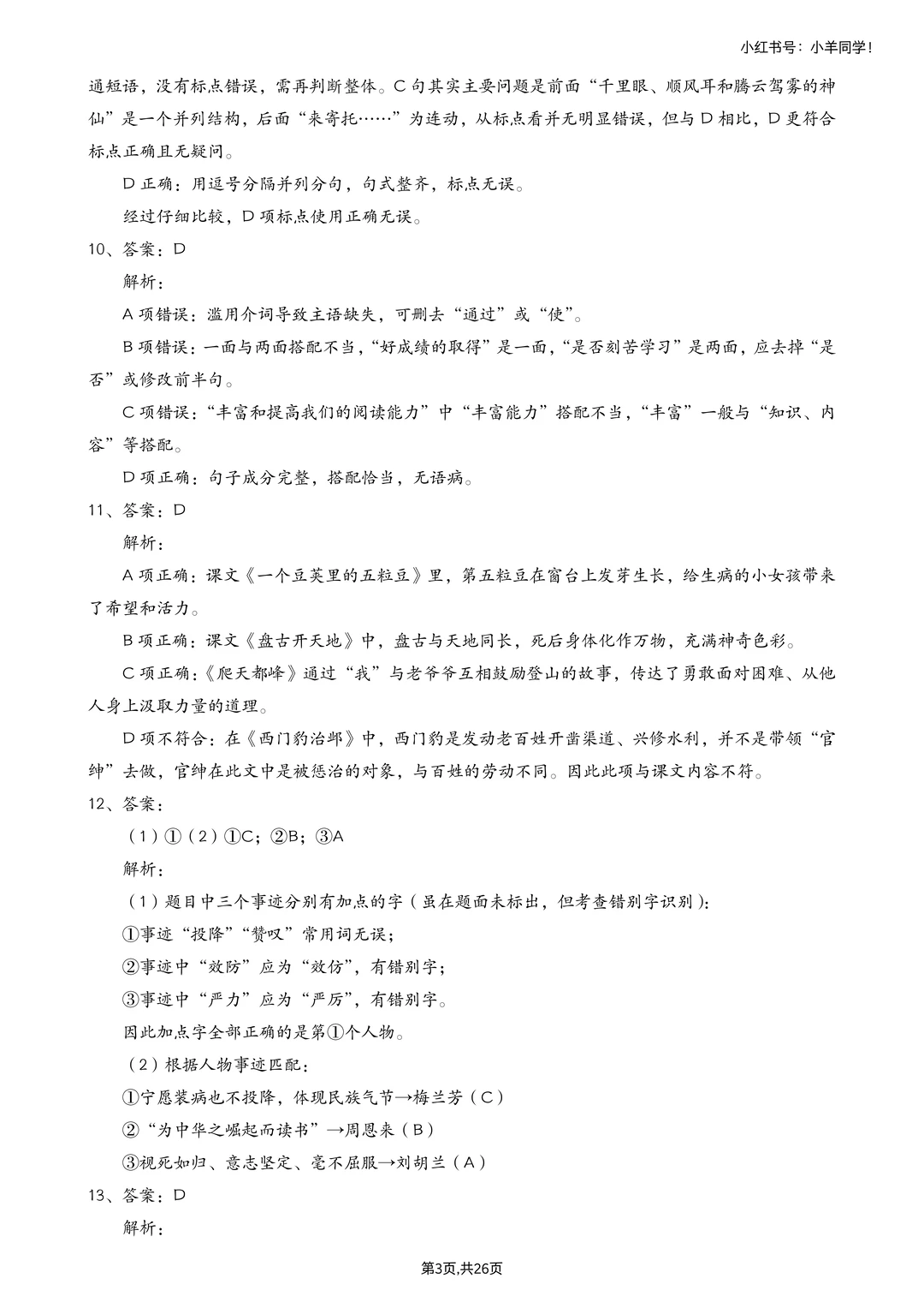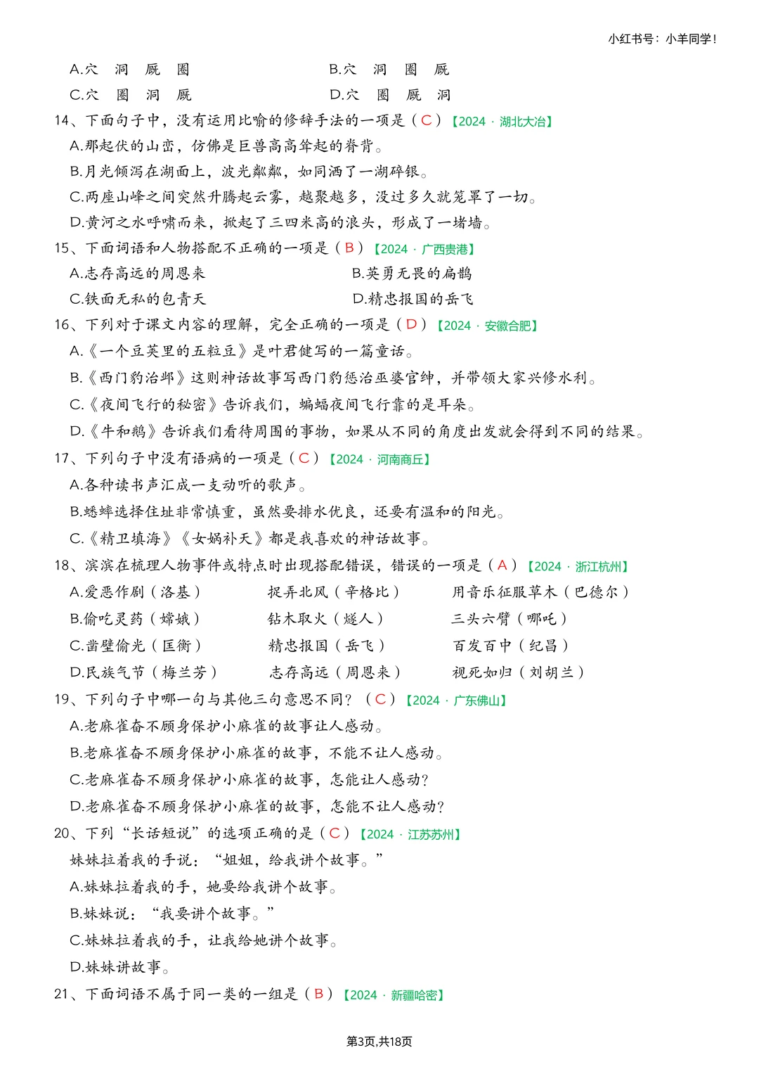 【不包含字词选择题、古诗+名言名句选择题,所以和其他两份选择题内容并不冲突】。