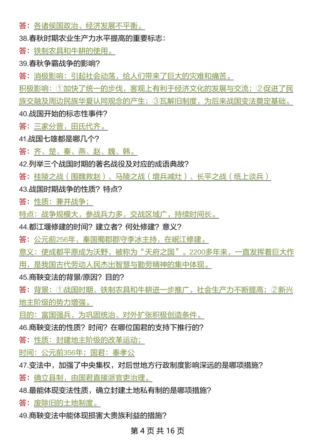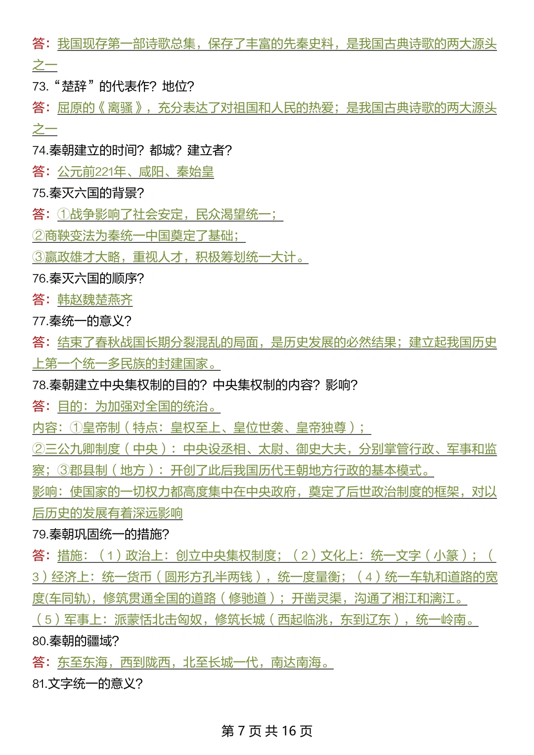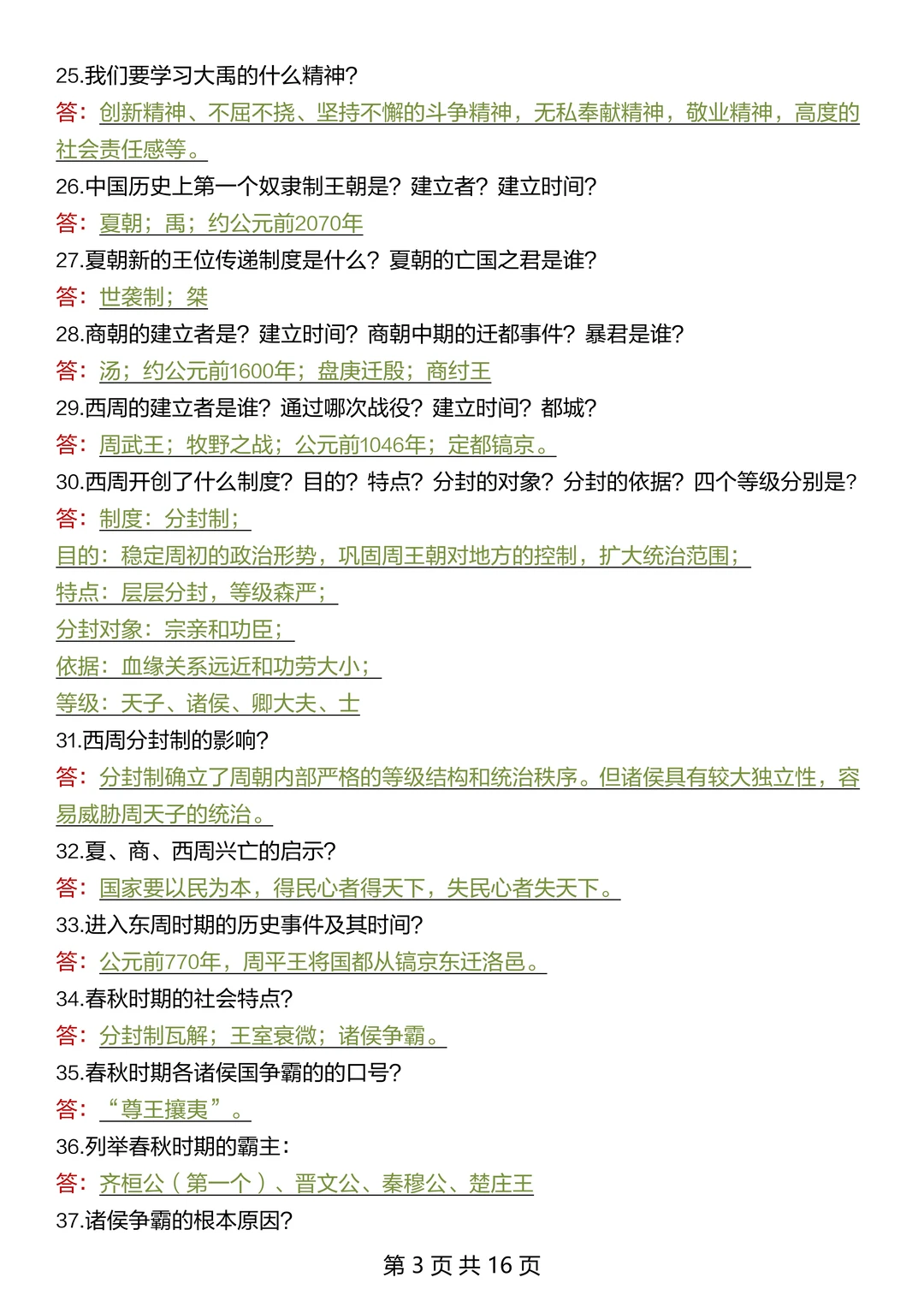 家长收藏孩子受益 知识点总结 七年级 七年级上册 七年级上册历史 初中历史 必背知识点 必考考点 初一 学霸秘籍期末考试期末复习