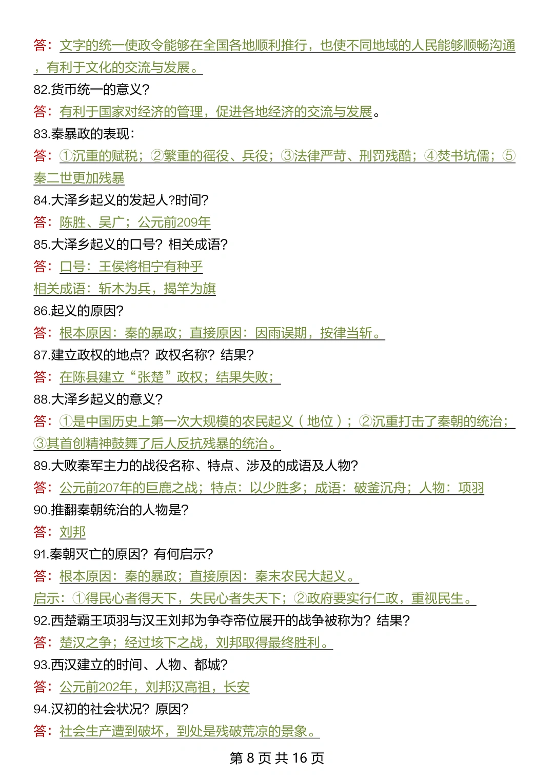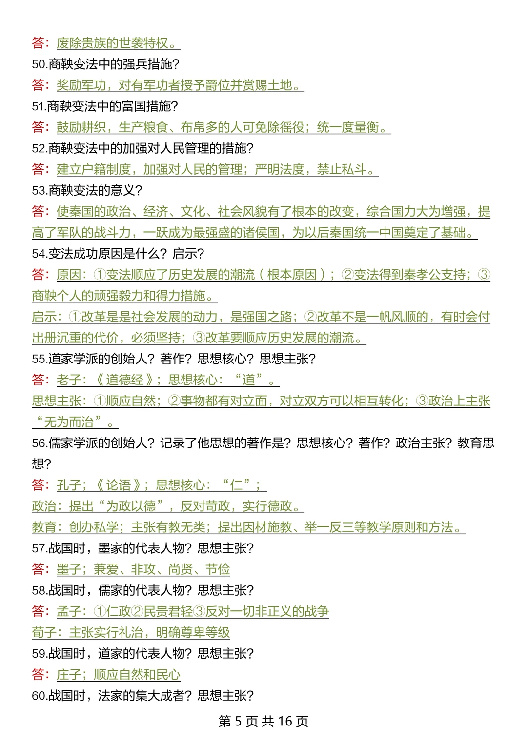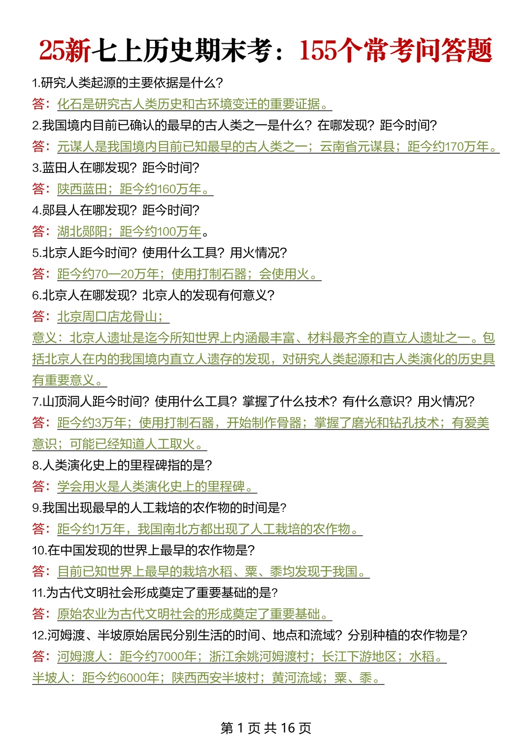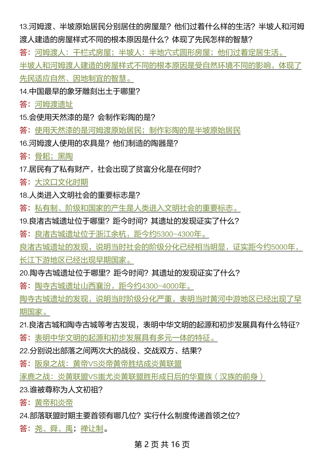 家长收藏孩子受益 知识点总结 七年级 七年级上册 七年级上册历史 初中历史 必背知识点 必考考点 初一 学霸秘籍期末考试期末复习