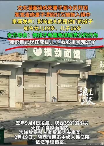 灌面汤杀妻案一审宣判:丈夫李某春被判死缓! 2025年12月12日,陕西“灌面汤杀妻案”一审宣判。被告人李某春因婚姻矛盾,酒后向妻子吴某莉浇灌面汤致其窒息死亡,被判处死刑,缓期二年执行。法院认定其有自首、被害人有过错及家属谅解等从轻情节。 案件关键点: 矛盾起因 :2024年6月起,因妻子吴某莉网络不当交友,夫妻关系恶化。 案发经过 :2024年9月4日凌晨,李某春酒后在面馆内与妻子争执,使用钢尺、皮带、菜刀等工具殴打后,向其浇灌面汤并拖入锅中。 死亡原因 :法医鉴定显示,吴某莉因呼吸道吸入面汤导致窒息死亡。